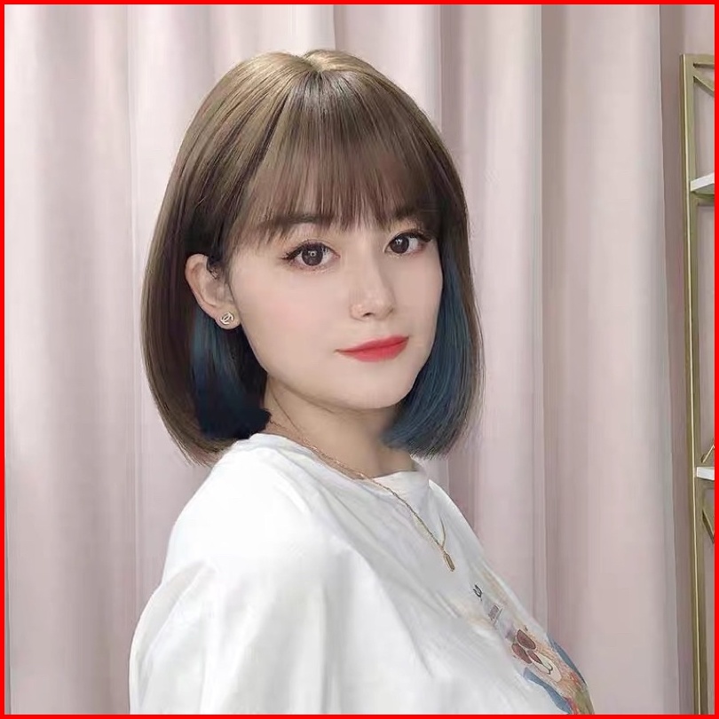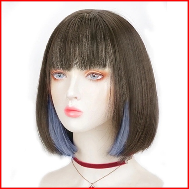 Aegyoshoppe - T25 Full Wig Korean Bobo Cold Brown Highlight Blue Lisa 33cm