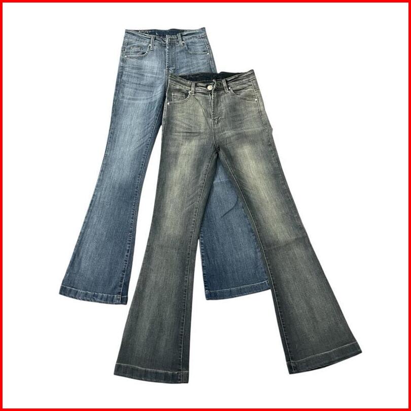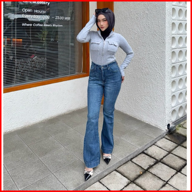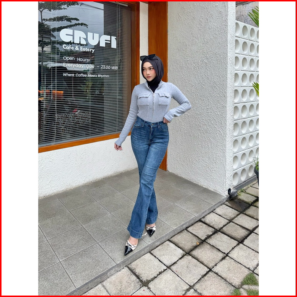 Hazee - Zola Celana Jeans Wanita Cutbray Highwaist Kancing 1 Bahan Melar