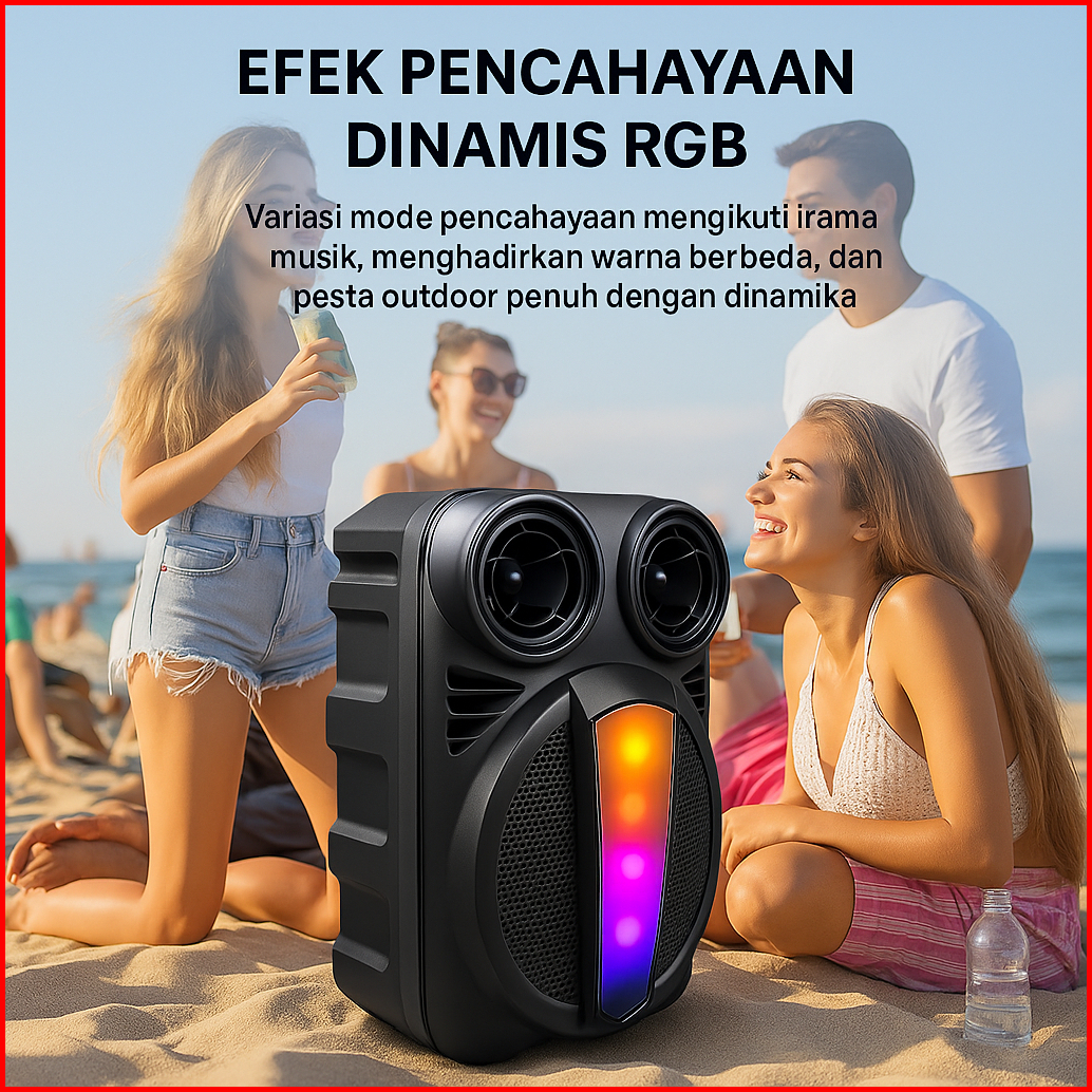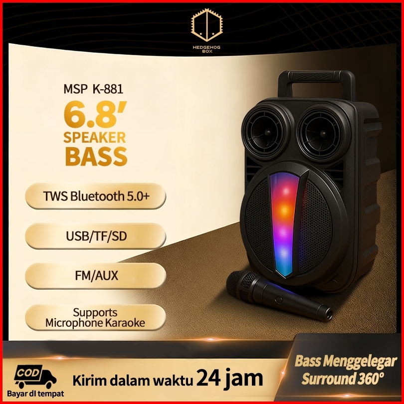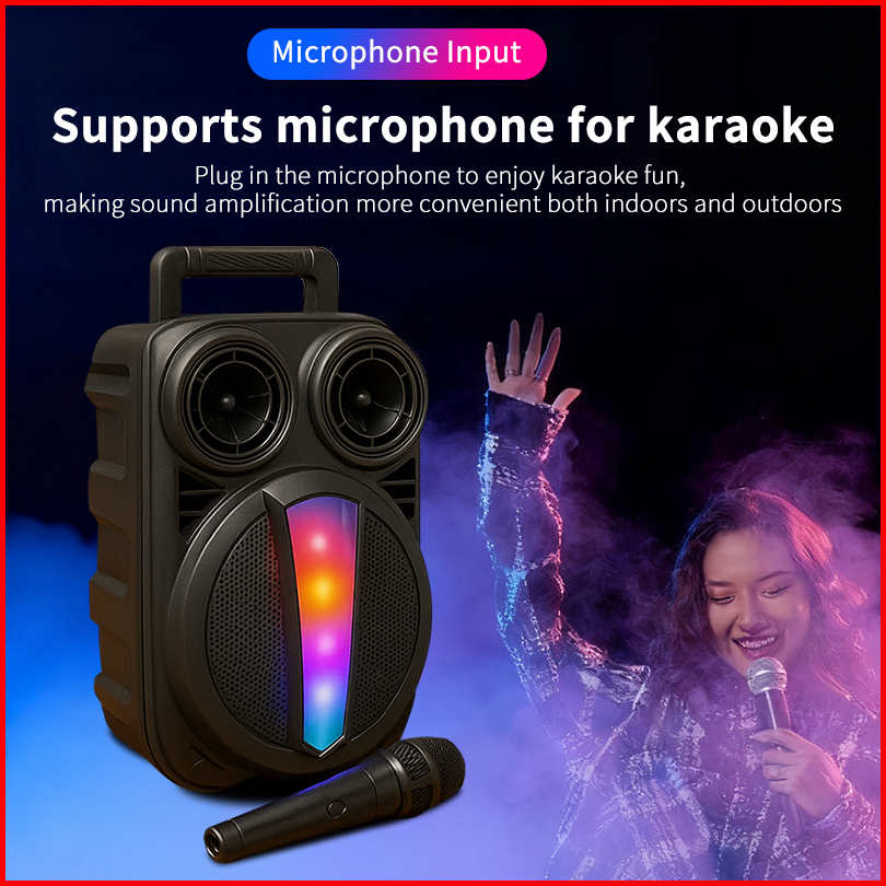 Speaker Bluetooth 6.8 Inch Full Bass 360 Surround Sound Lampu Warna Rgb Portable Karaoke Free Mic