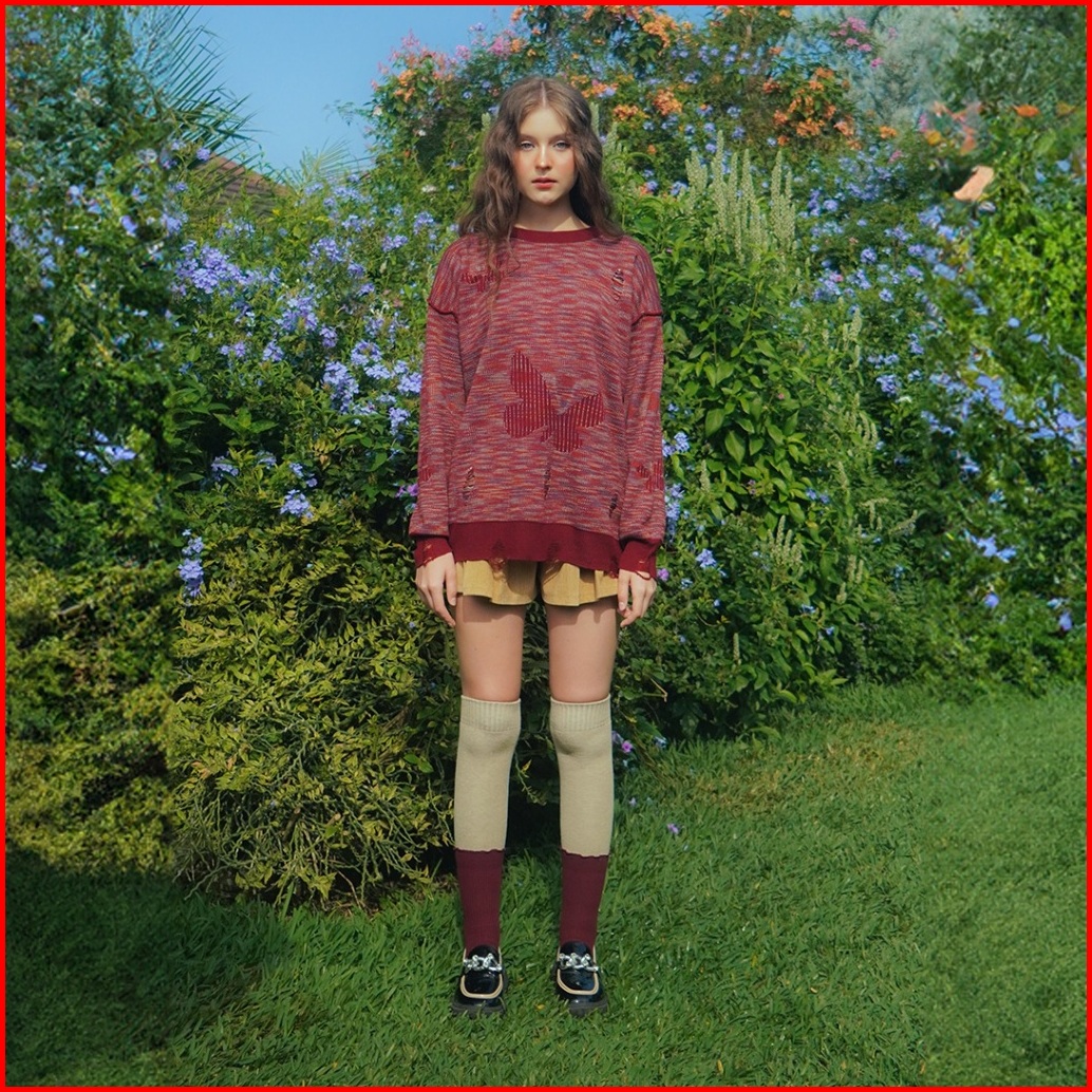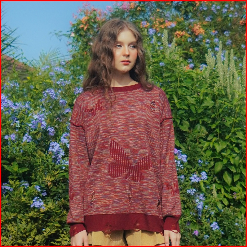 Yesyou Morpho Maroon Oversized Reversible Knitwear