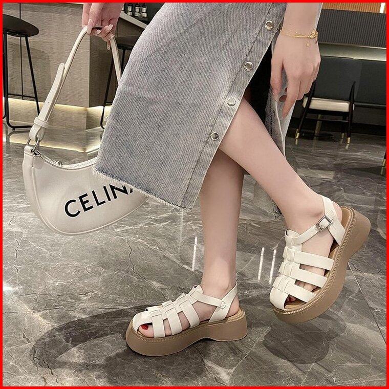 Sandal Tali Wedges Wanita Kekinian Leather Premium Tali Belakang S-21 Onlinemall