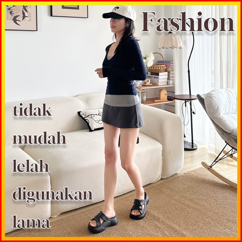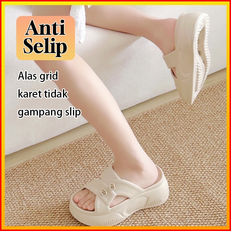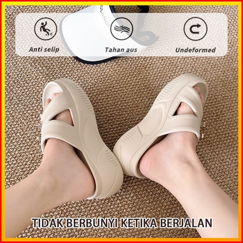 Sandal Wedges Wanita Slop Backstrap Tali Sol Tebal Sendal Perempuan Jelly Kekinian Super Tebal Eva Size 35-40