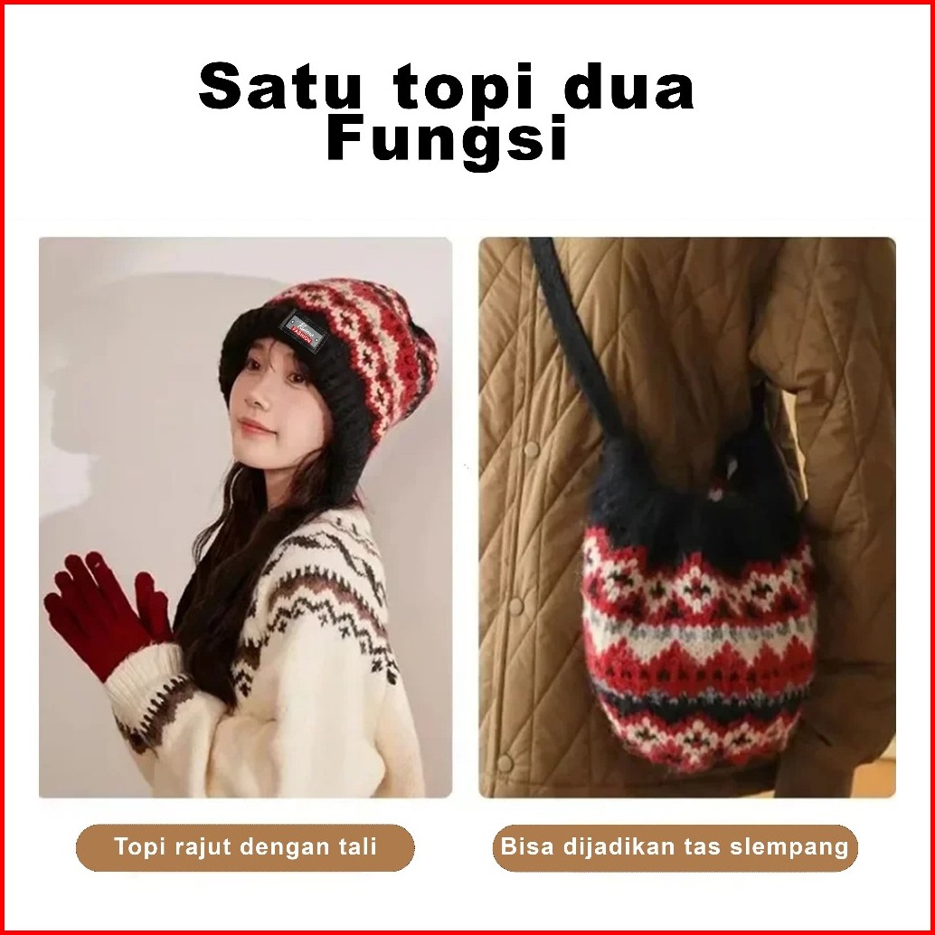Ruimo Topi Kupluk Rajut Tebal Woman Hats - Model Terbaru D-15