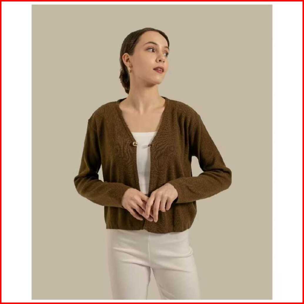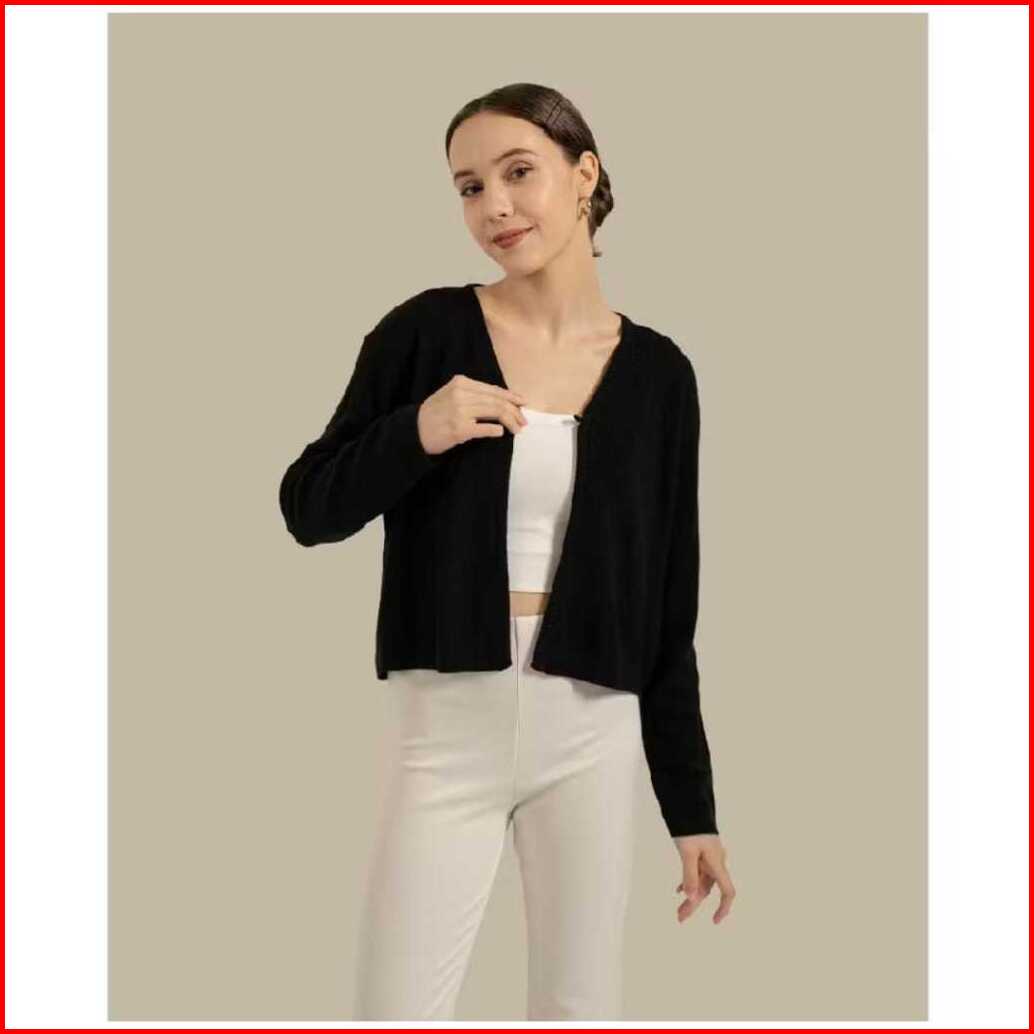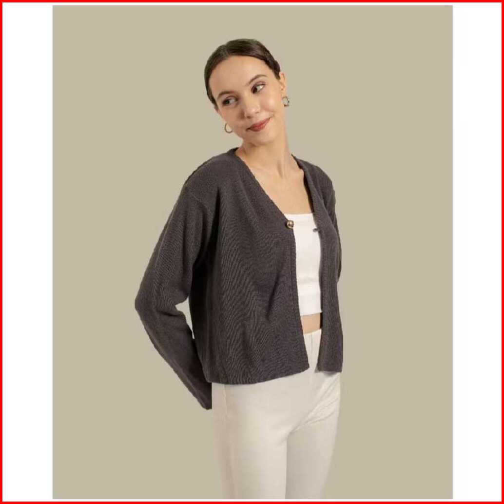 Cardigan Crop Maja - Cardi Outer Rajut Wanita Polos Lengan Panjang Korean Style