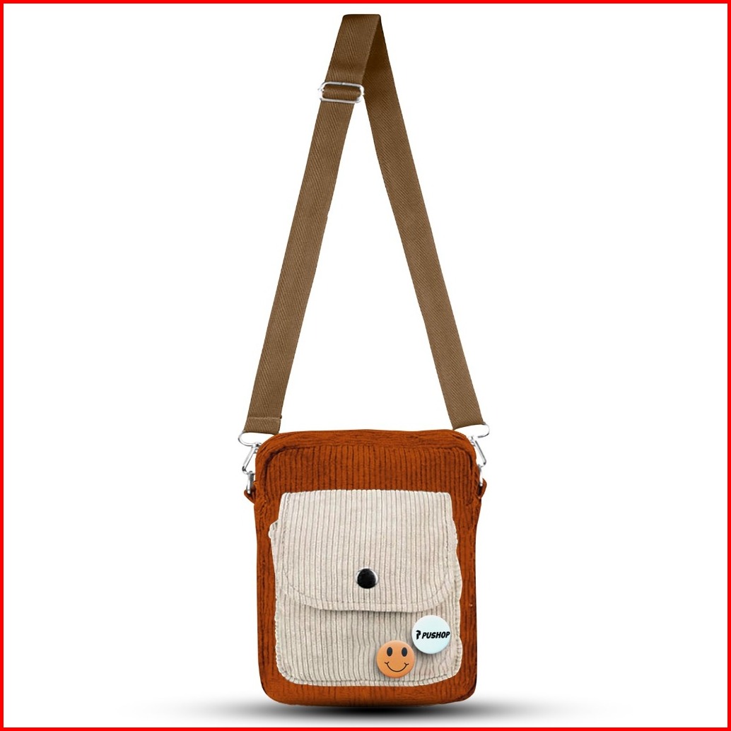 Pushop Tas Selempang Corduroy Pria Wanita Cassa - Mini Slingbag Corduroy Uniseks Free 2 Pin Bros