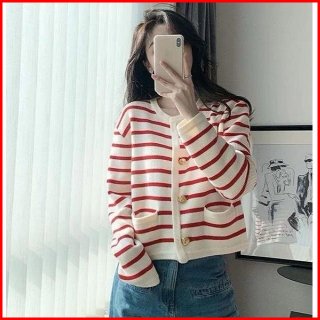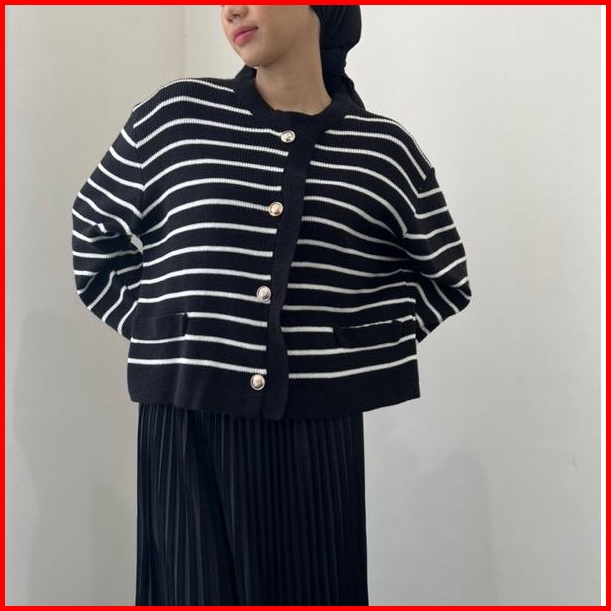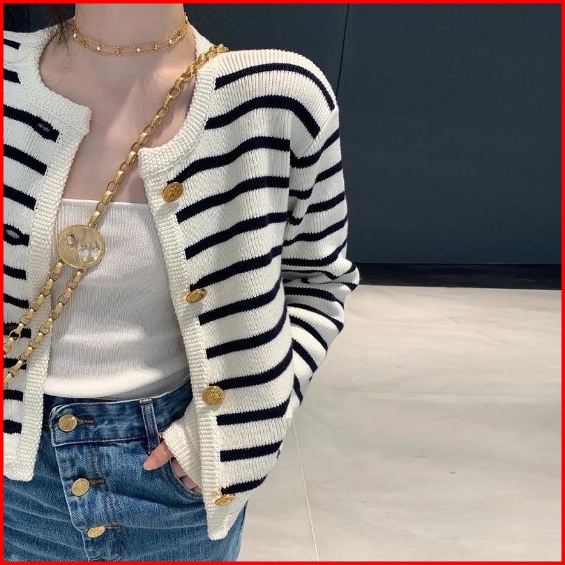 Keisya Stripe Cardigan Uoter Korea Cardigan Knit