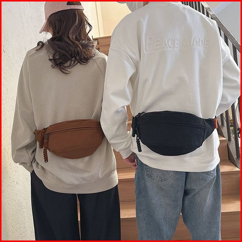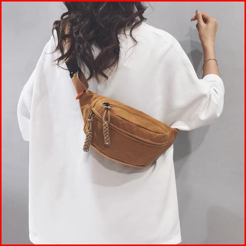 Wanita Waistbag Tas Selempang Corduroy Korea Tas Bahu Tas Sling Pouch Bag Waterproof Sport Bag