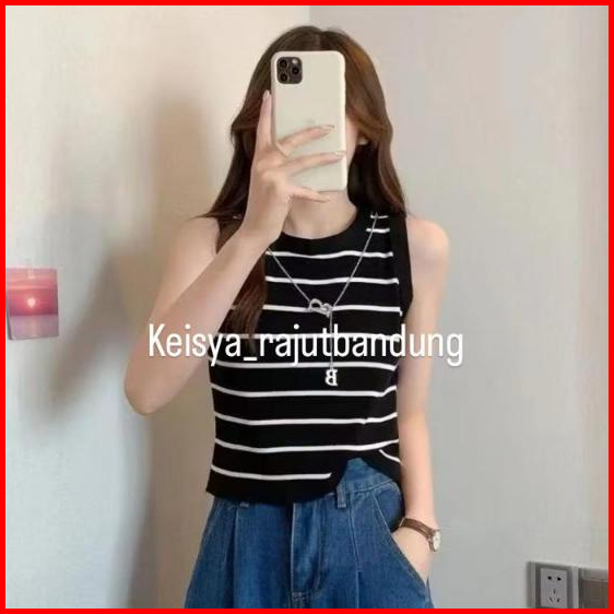 Keisyatanktop Rajut Inner Top Wanita Korean Crop Top Salur Warna Solid