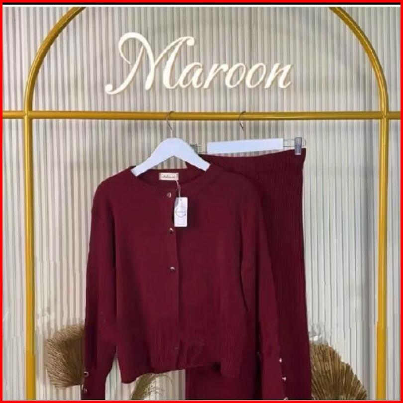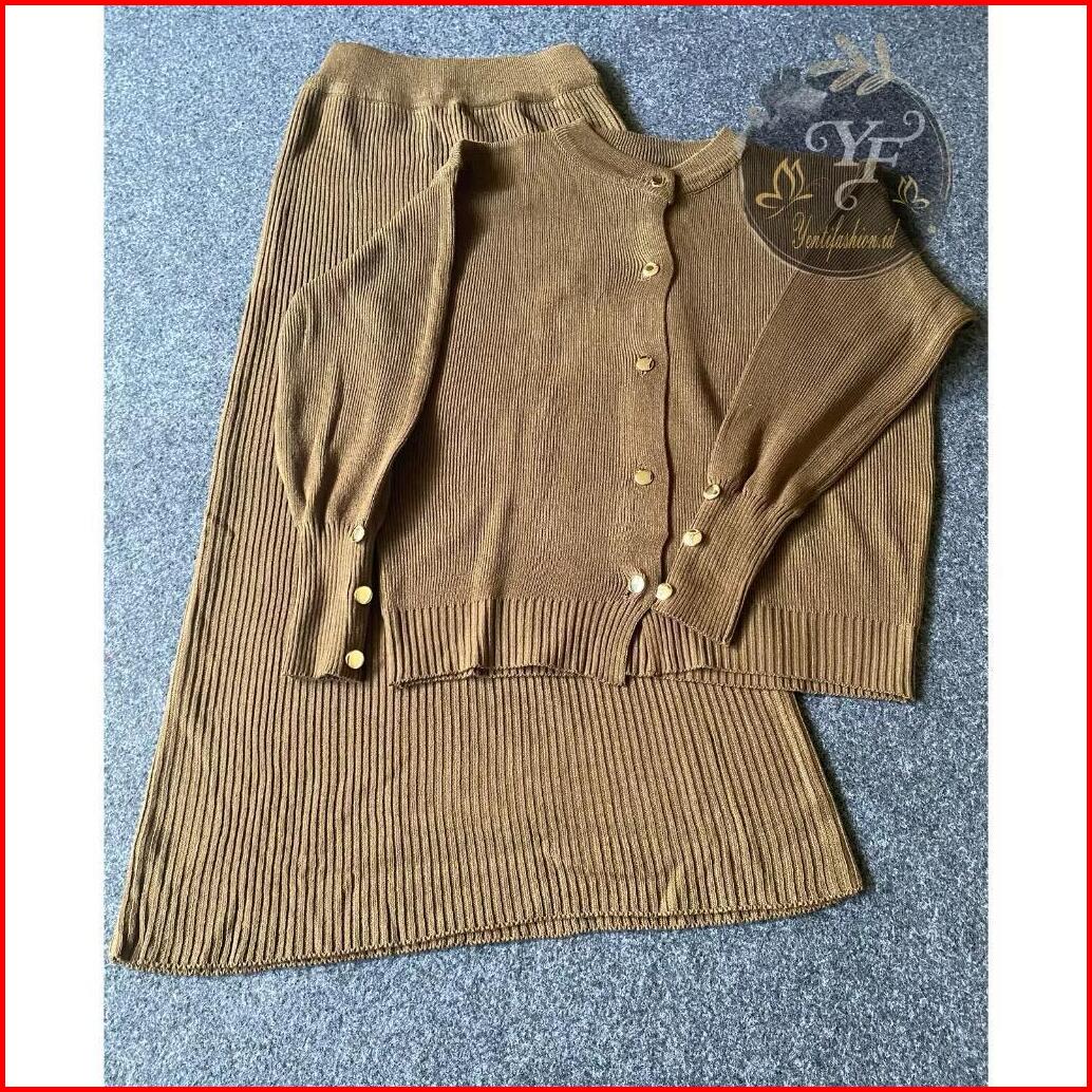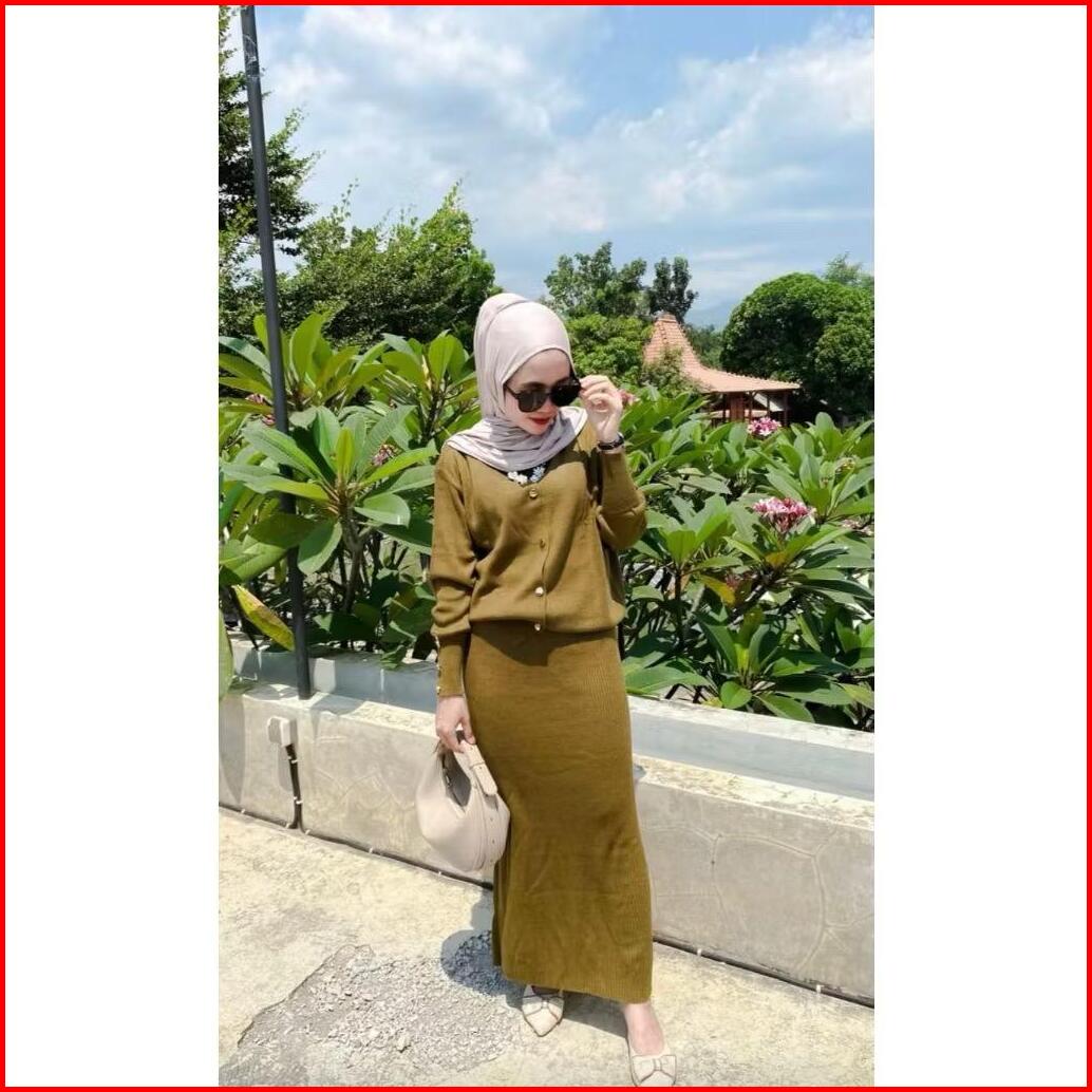 Oneset Cardigan Tarla Dan Rok Span Rajut Wanita