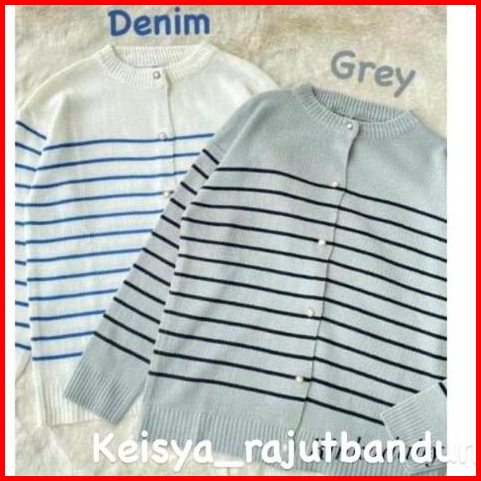 Keisya Qinara Cardigan Rajut Strip Kancing Mutiara Premium