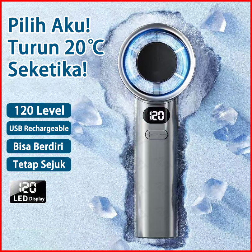 Kipas Angin Portable 120 Gigi Turbo Mini Tangan Genggam Mini Fan Tampilan Daya Lcd