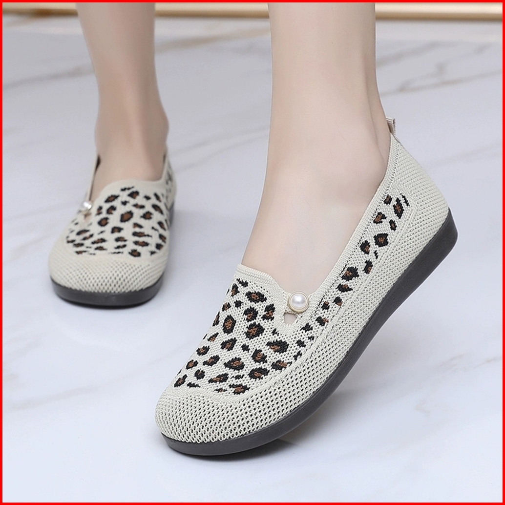 Ruimo Sepatu Slip On Wanita Motif Leopard Flatshoes Jelly W-2