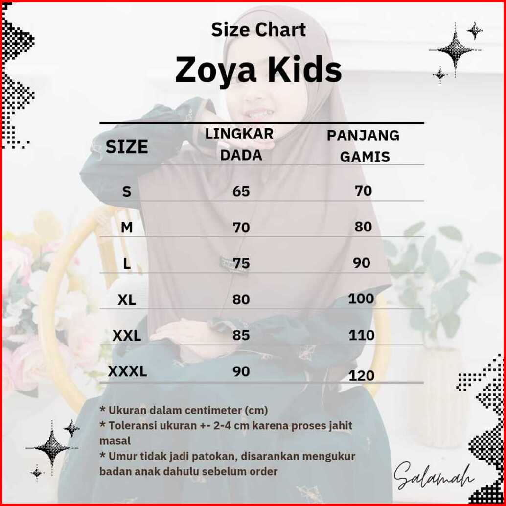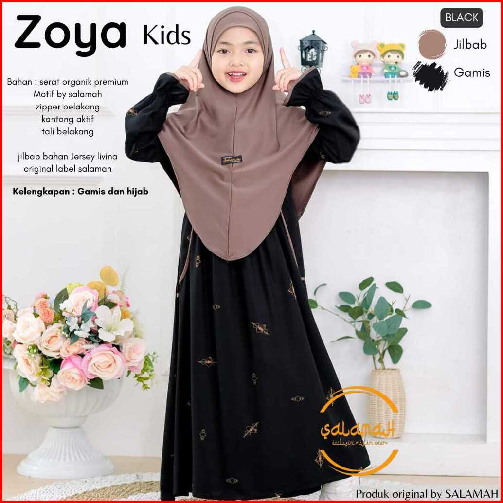 Gamis Anak Zoya Kids Plus Jilbab Motif By Salamah Usia 2 3 4 5 6 7 8 9 11 -15 Tahun By Salamah