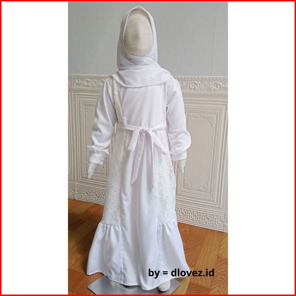 Set Gamis Anak Warna Putih Free Hijab 1- 14 Tahun