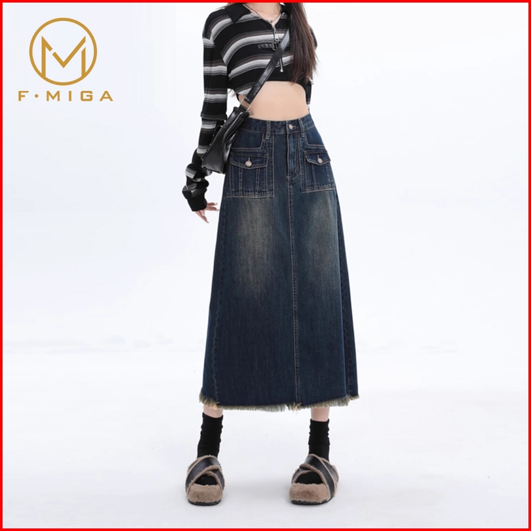 F.miga C75 Korean High Waist A-line 3 4 Rok Midi Panjang Kasual Wanita - Hitam