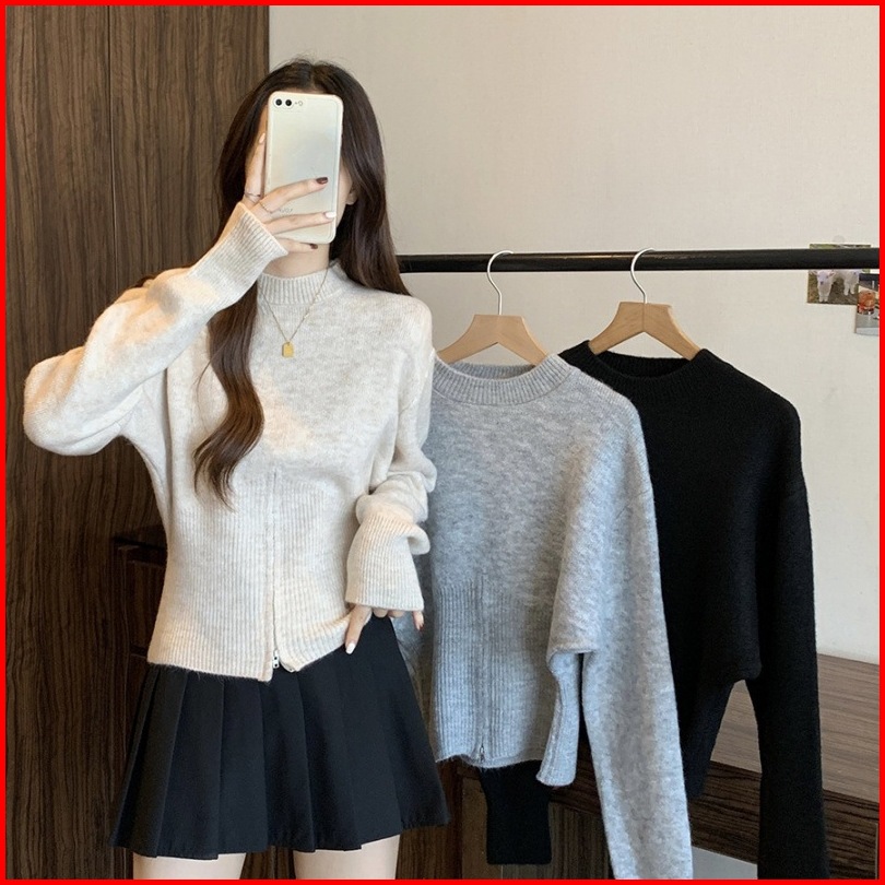 Ajw Sweater Casual Zipper Korean Style Knit Import Premium Rcy Atasan Rajut Casual Knit Lengan Panjang Kekinian Casual K