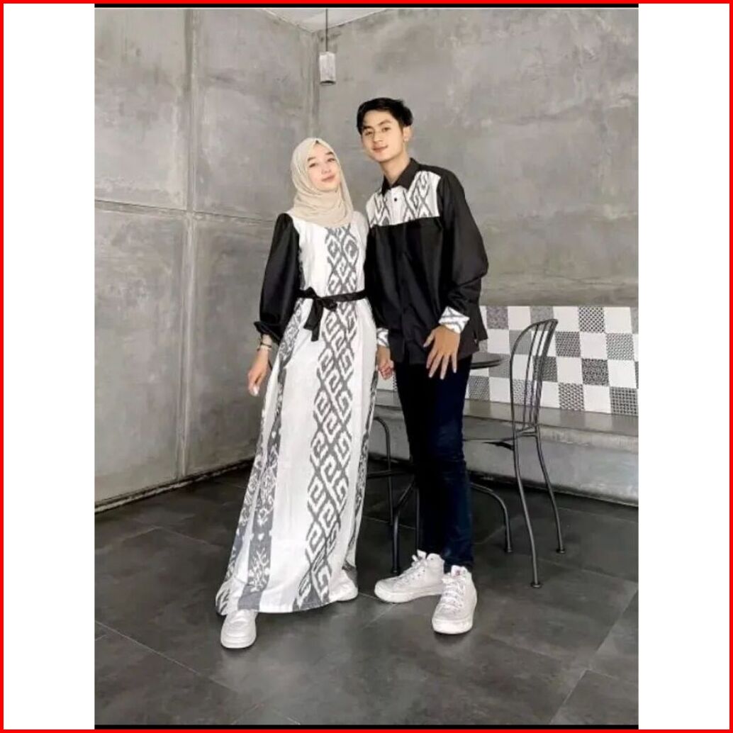 Gamis Couple Tenun Kondangan Prewedding Ikat Toraja White - Couple Ethnic Sumbawa - Busana Couple Tenun