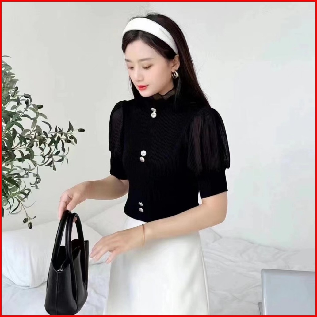 Ajw Turtleneck Wanita Lengan Pendek Rajut Import Premium Har Blouse Turtleneck Elegan Lengan Pendek Knit Premium Baju Ko