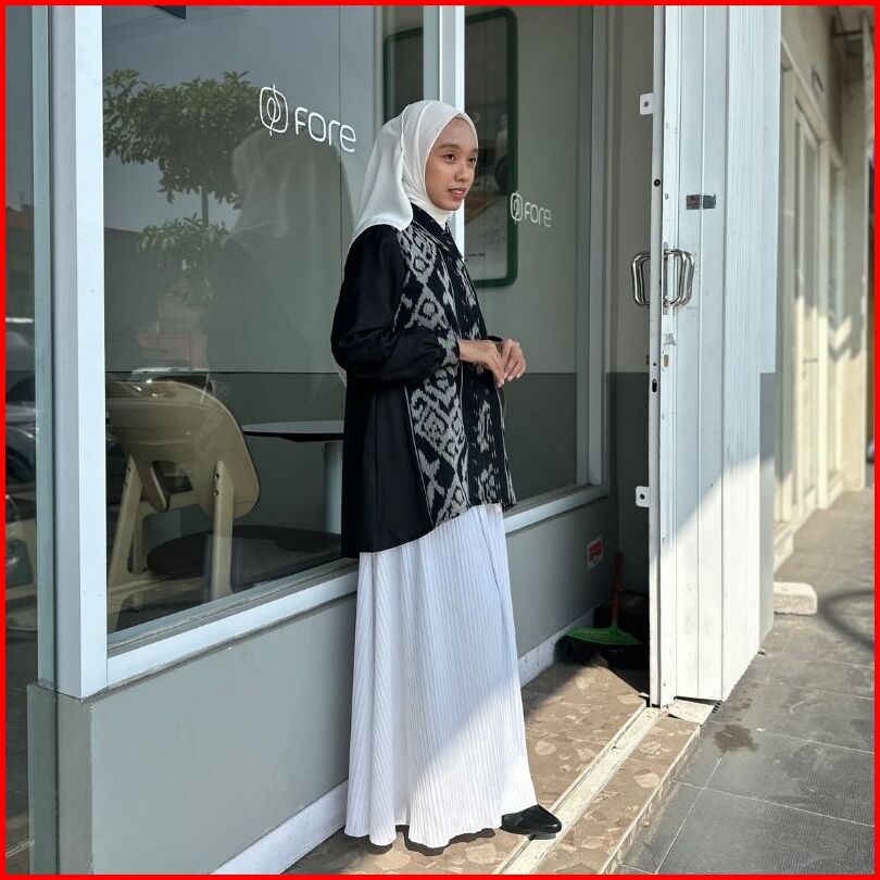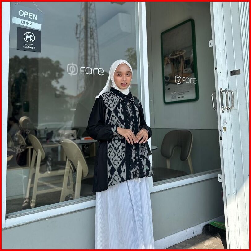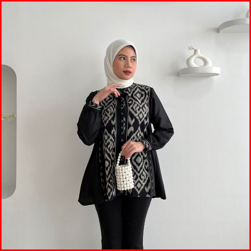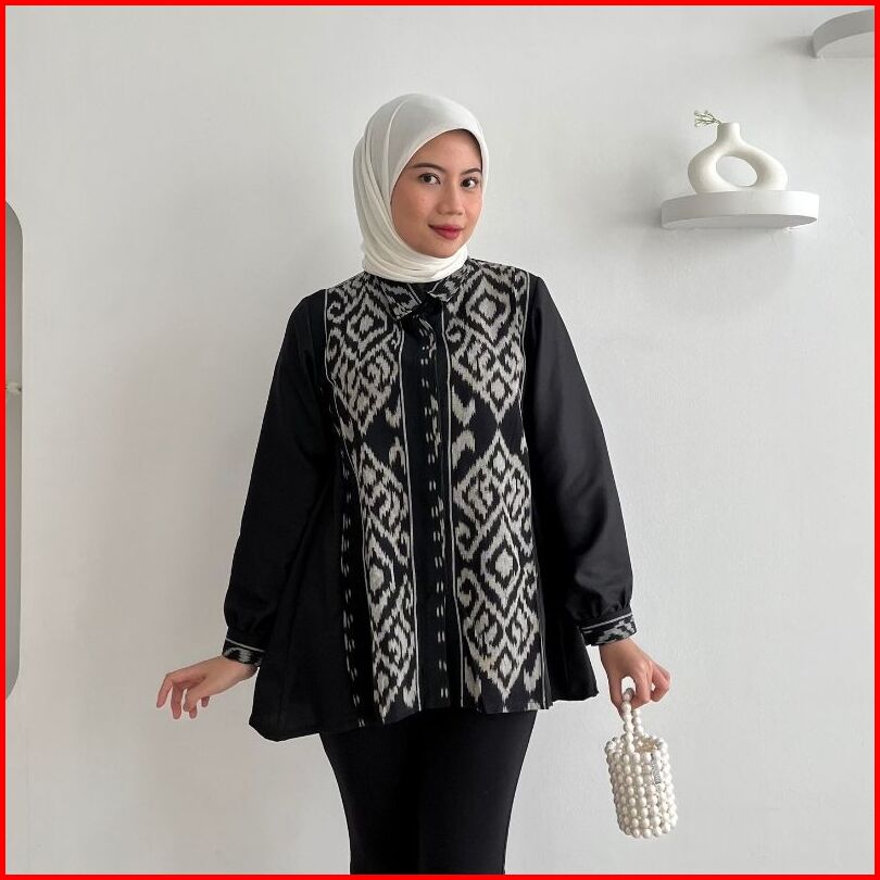 Rasaraya Batik Layla Kemeja Wanita Tenun Troso Jepara - Atasan Hitam Lengan Panjang Formal Busui