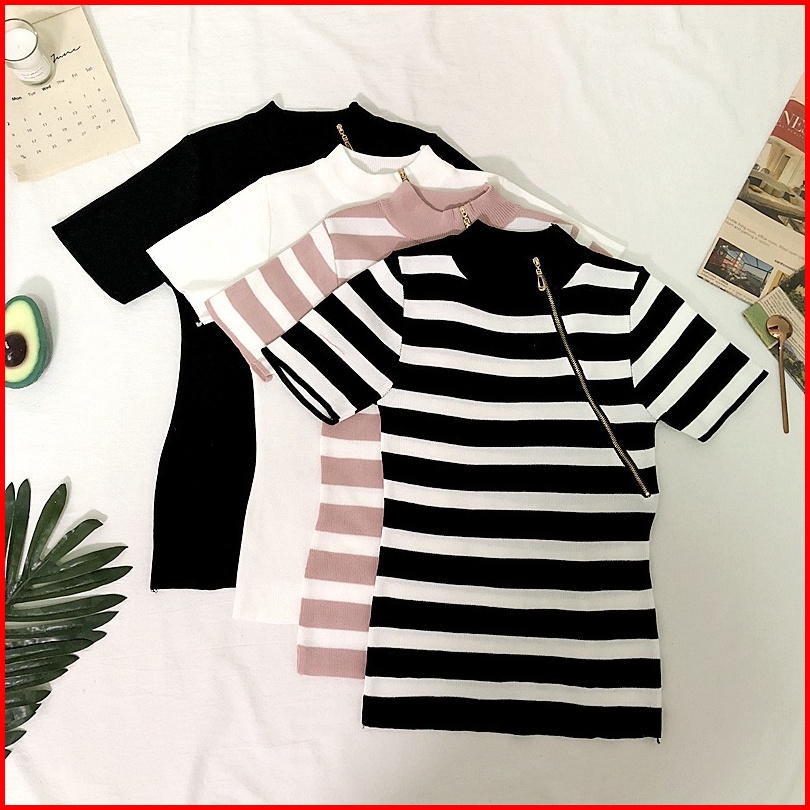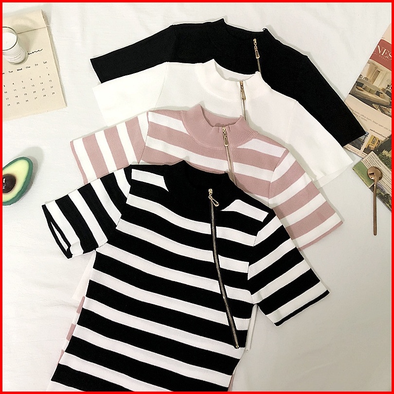 Ajw Atasan Wanita Kekinian Korean Style Rajut Lengan Pendek Import Premium Hy Haa Turtleneck Resteling Model Terbaru Ata