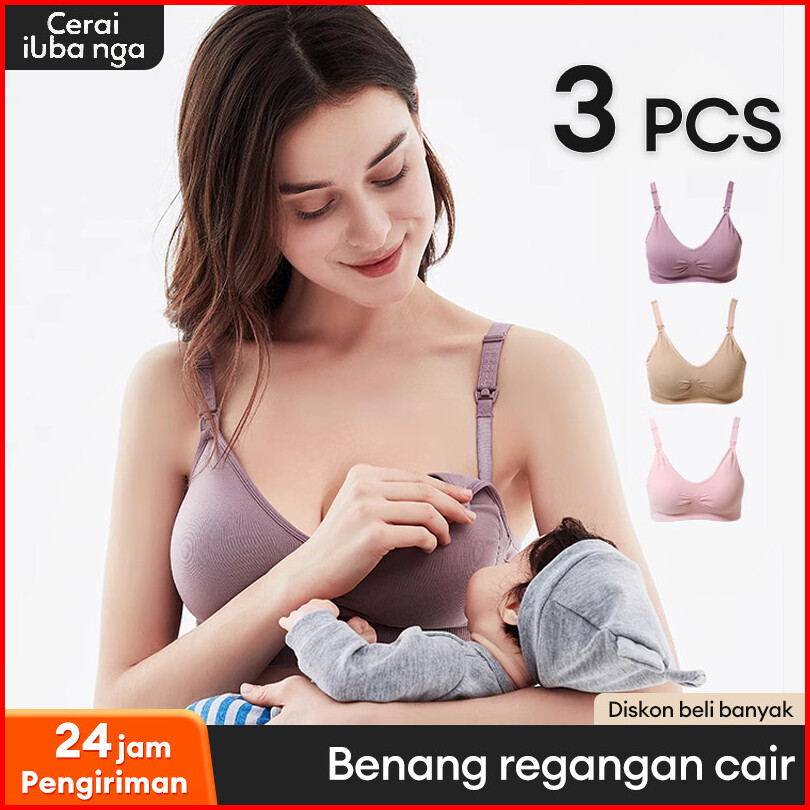 3pcs Bra Menyusui Fashion Jumbo Kancing Depan Tanpa Kawat Bh Menyusui Bahan Katun 937