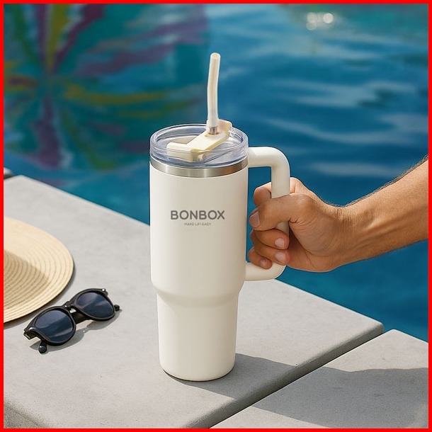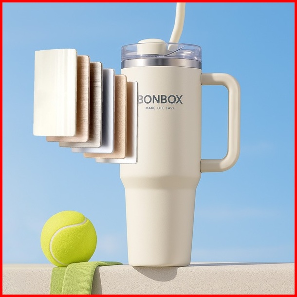 10 Jam Dingin Bonbox Kitchen Tumbler Sedot Raksasa 1200ml - 4 Warna Putih Abu Gradient Hitam Pink Sistem Putar 3 Mode Mi