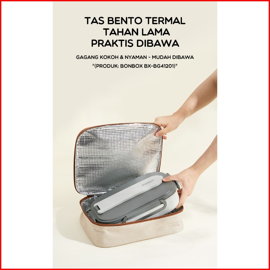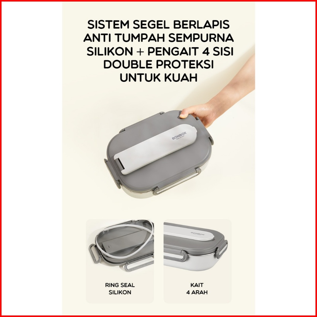 Bonbox Kotak Makan Stainless Steel 304 Anti Bocor Tas Bekal Sekolah Kantor Lunch Box Bte41210 Gery 2000 Ml