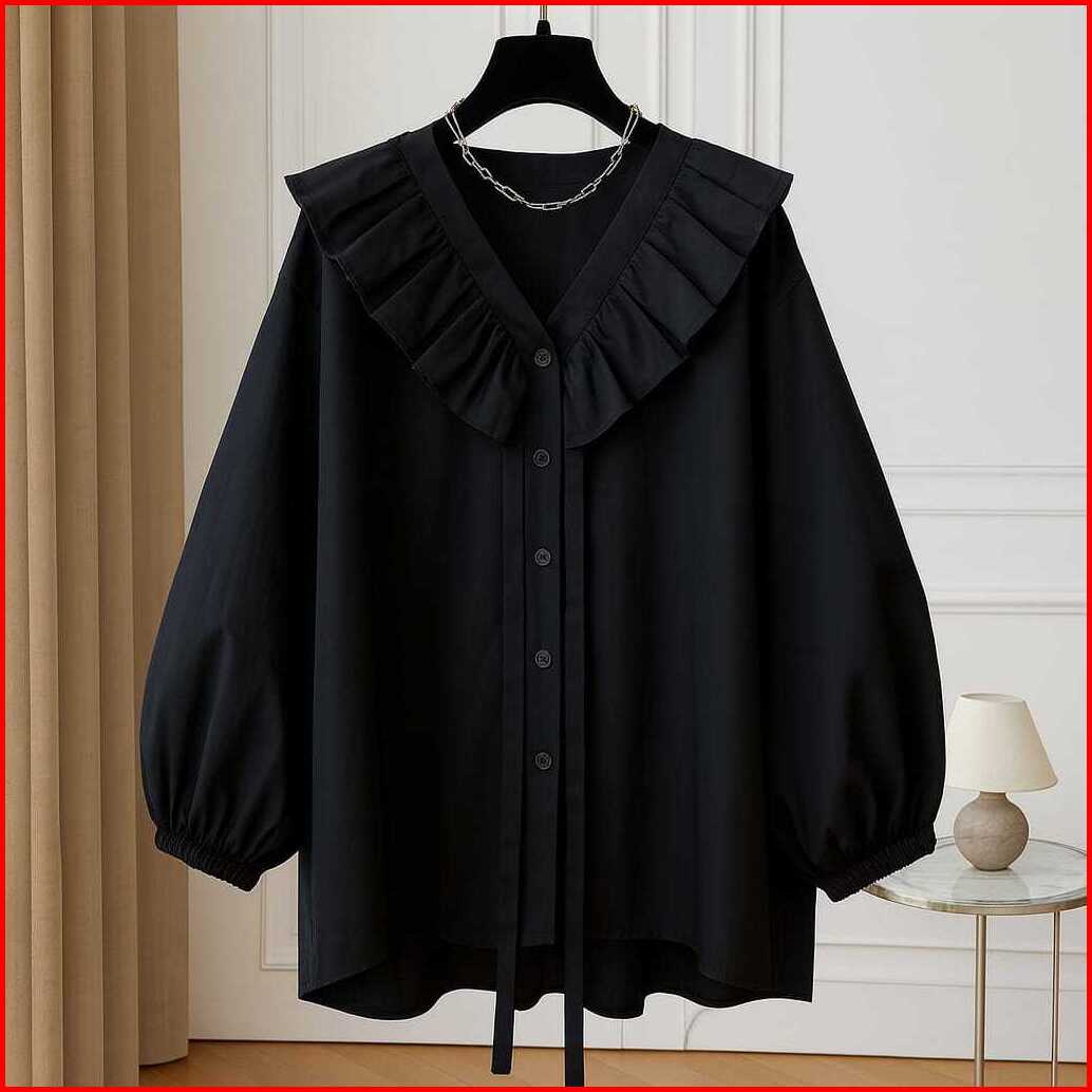 Naluna Studio Lamika Blouse V Neck Atasan Wanita Lengan Panjang
