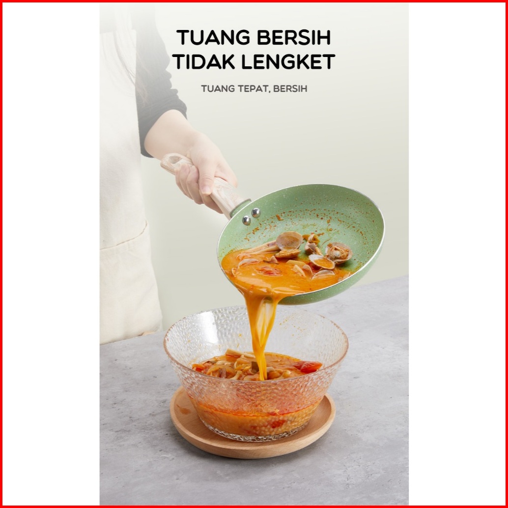 Wajan Goreng Bonbox 20cm 24cm Hitam Hijau - Lapisan Lfgb Fda Tahan 100.000 Gosok Pemanasan 40 Lebih Cepat Ringan Anti Le