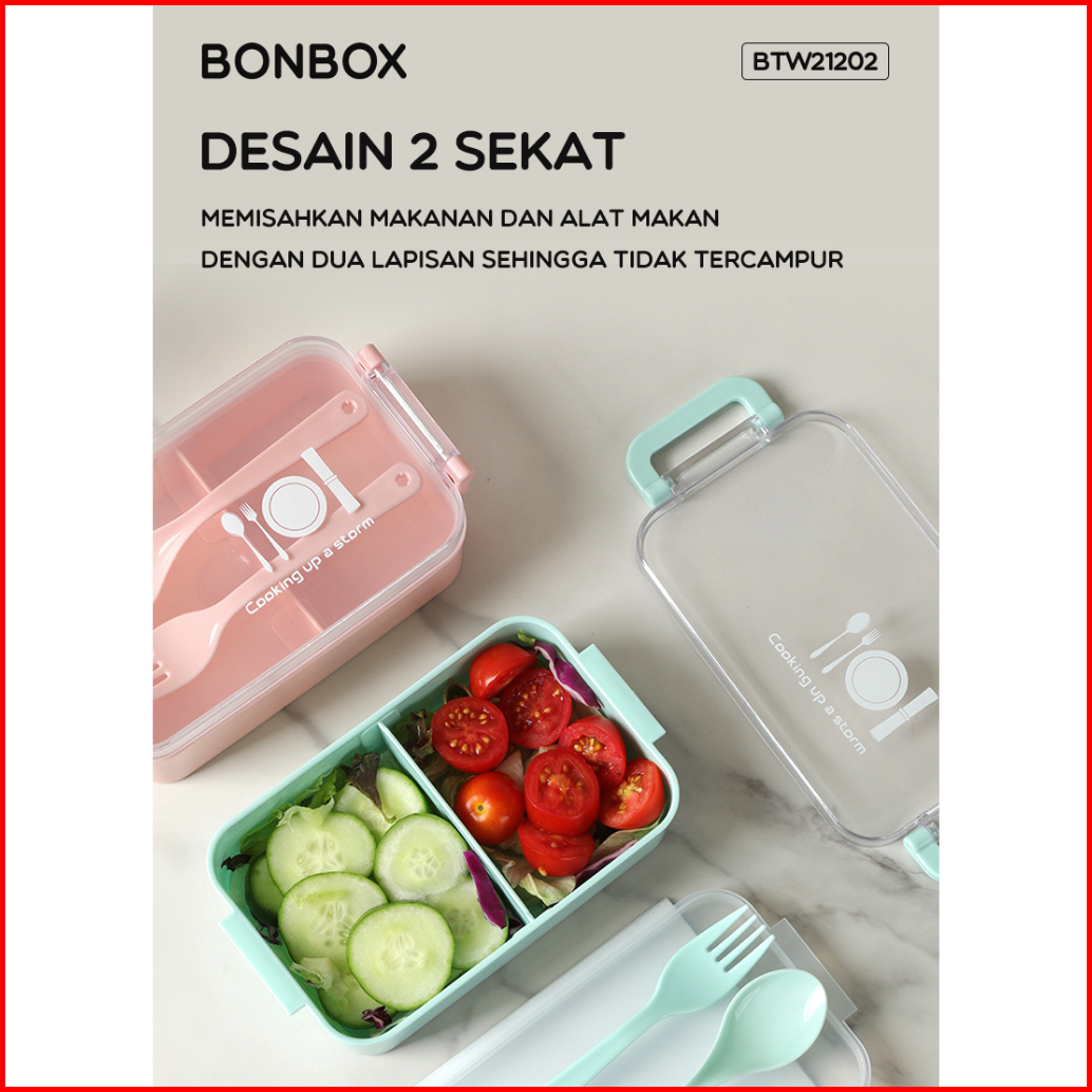 Bonbox Kitchen Lunch Box Kotak Makan Tempat Bekel Anti Tumpah Food Grade Tableware Btw21202