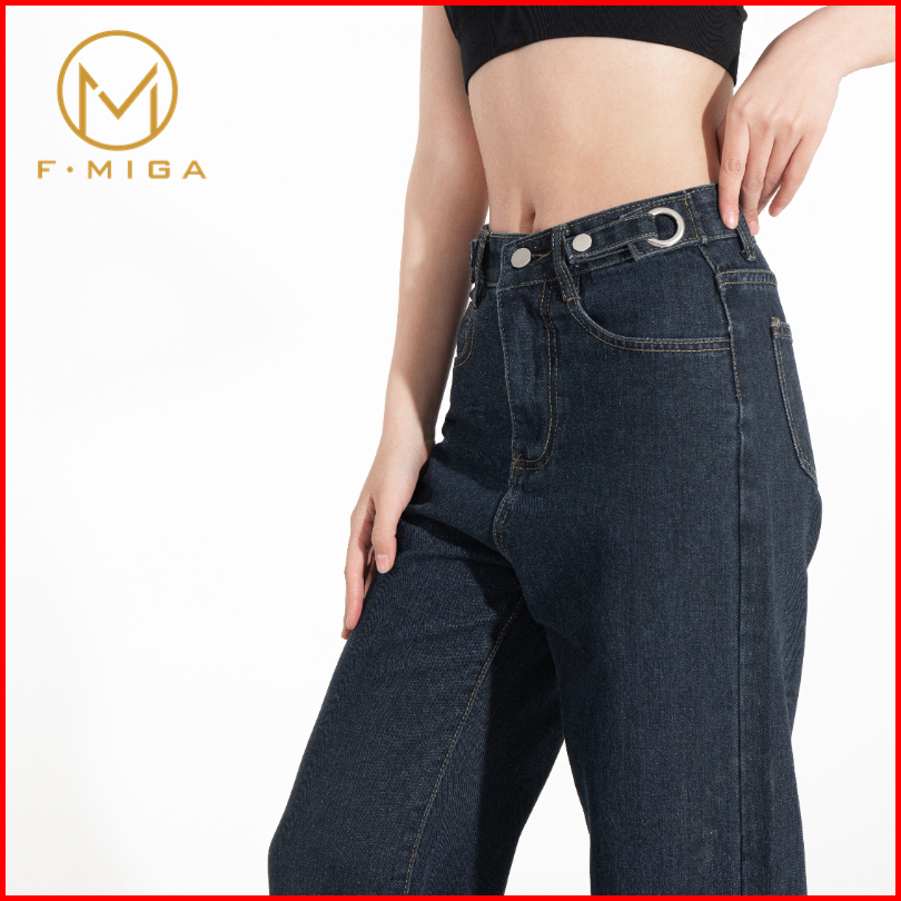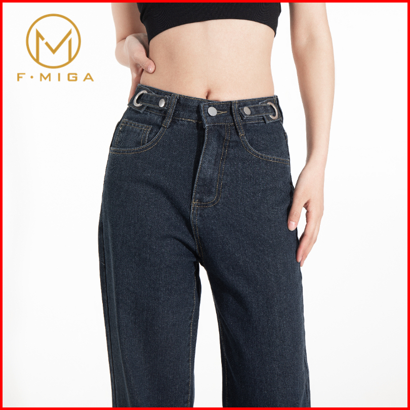 F Miga C42 Korean Celana Jeans Hig Hwaist Wanita Bagy Straight - Abu-abu Biru