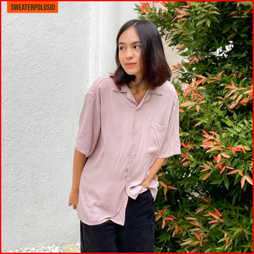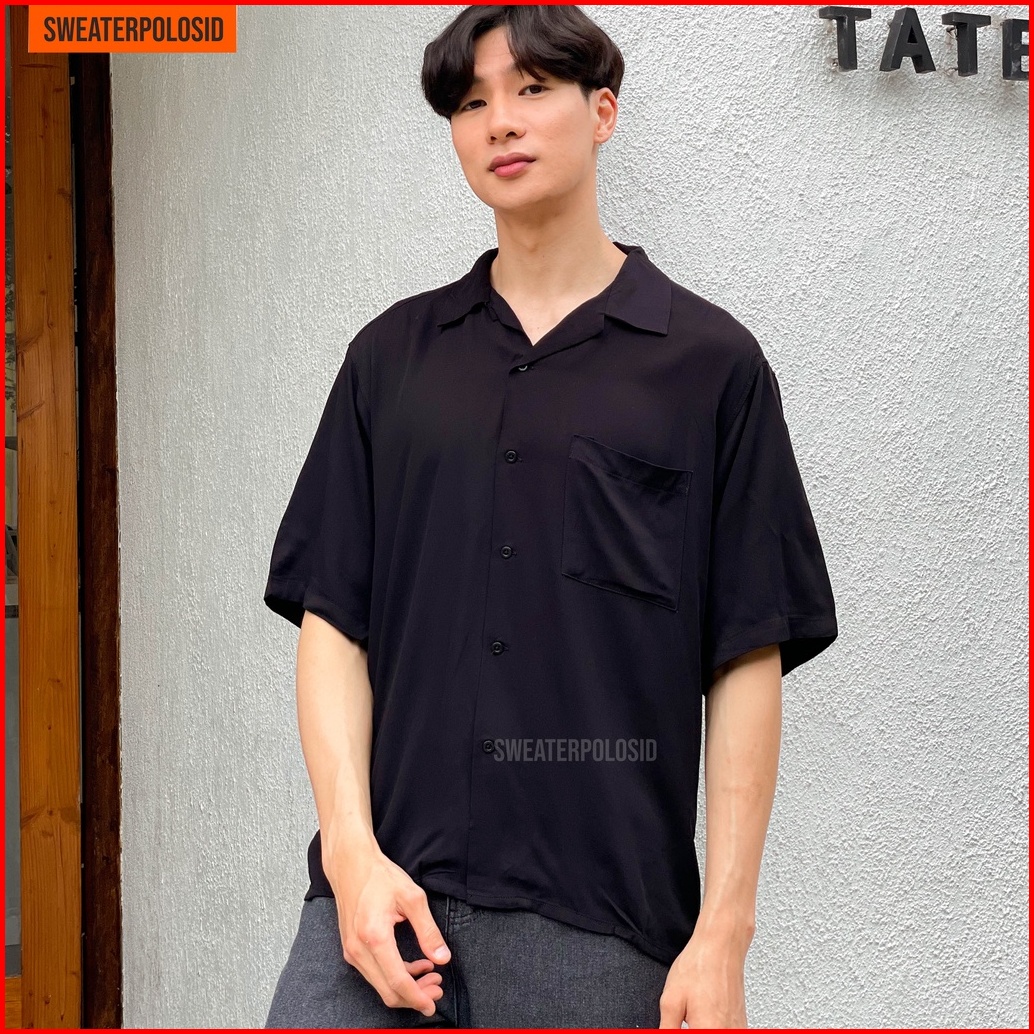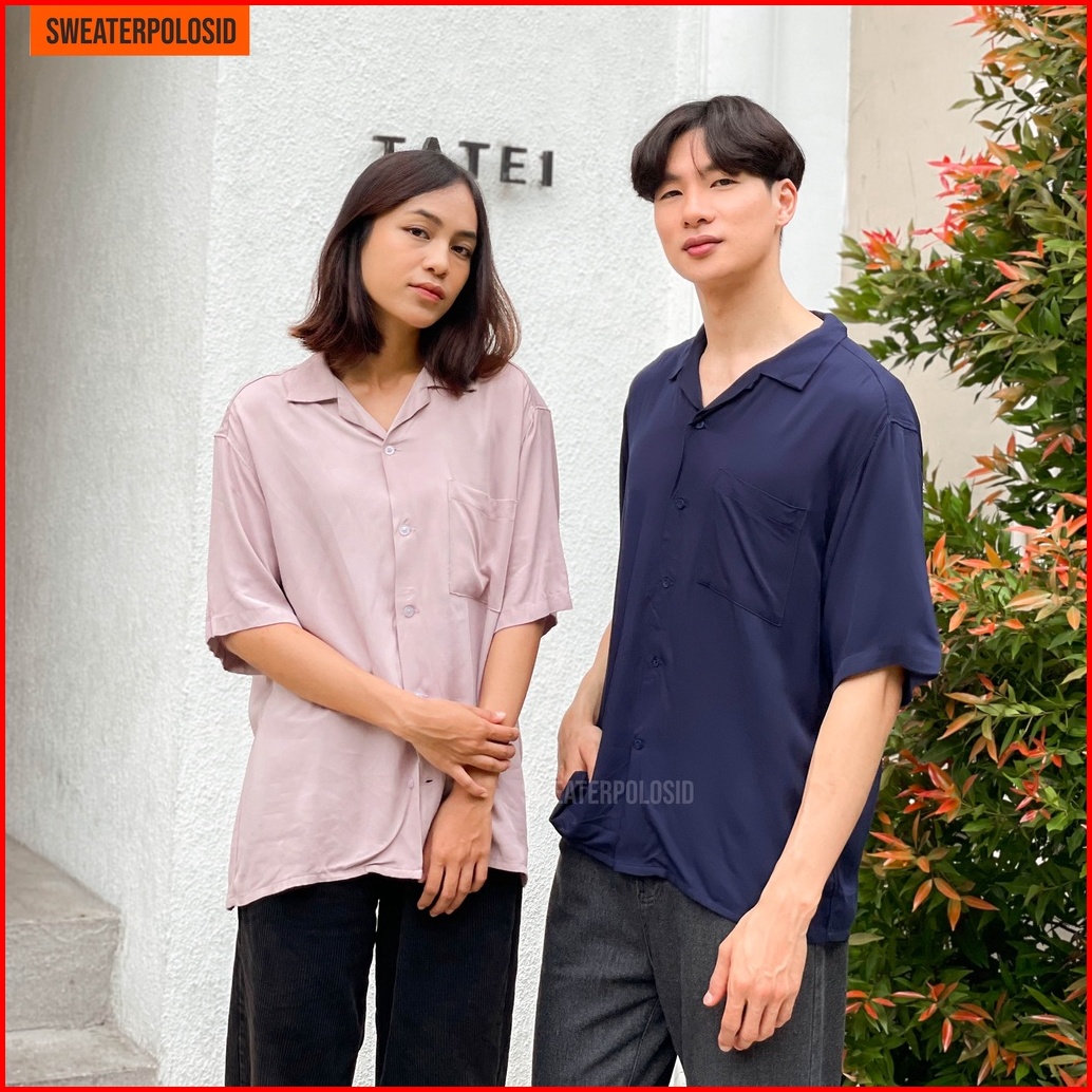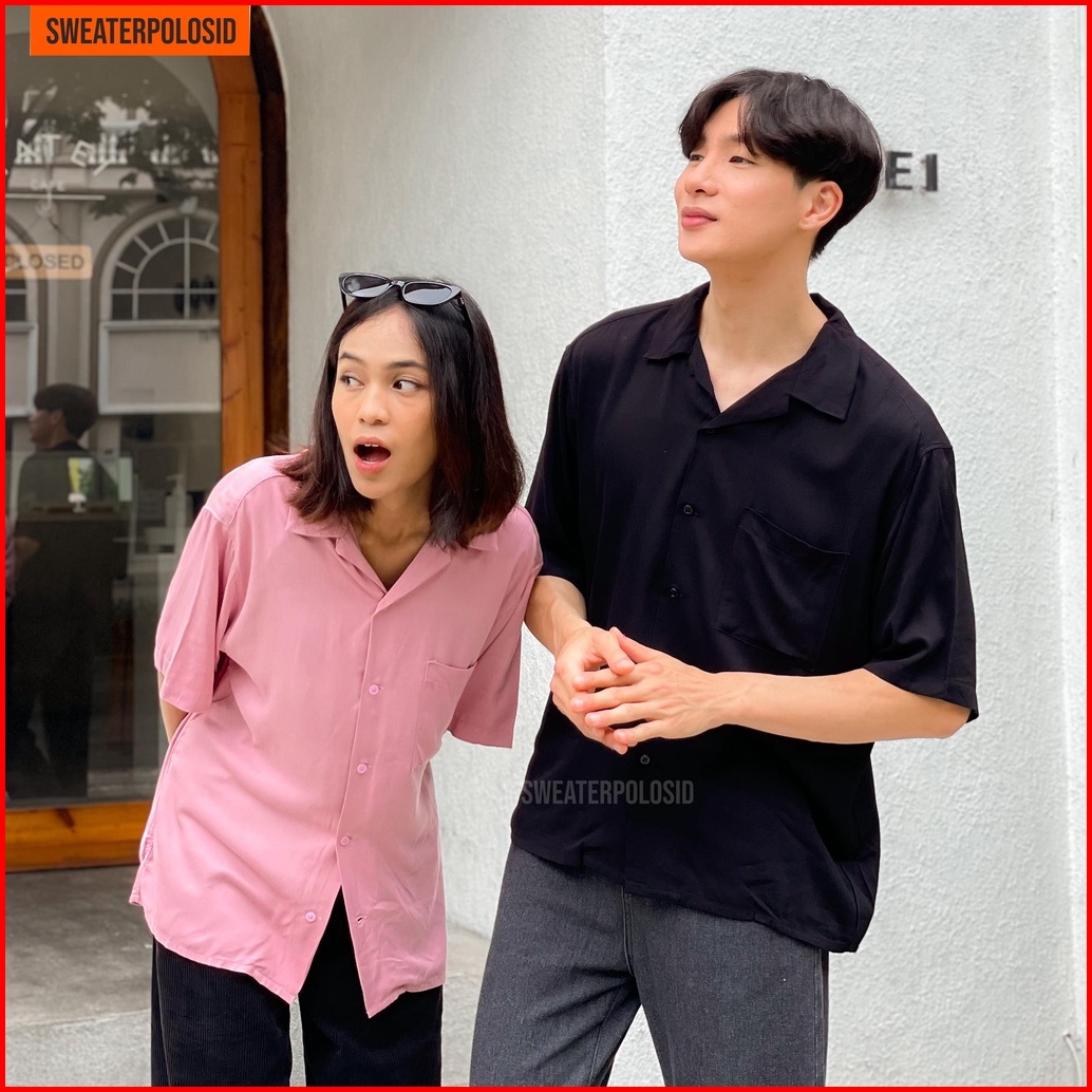Swepo Kemeja Hawai Polos Hawaiian Shirt M-xxl Pria Wanita