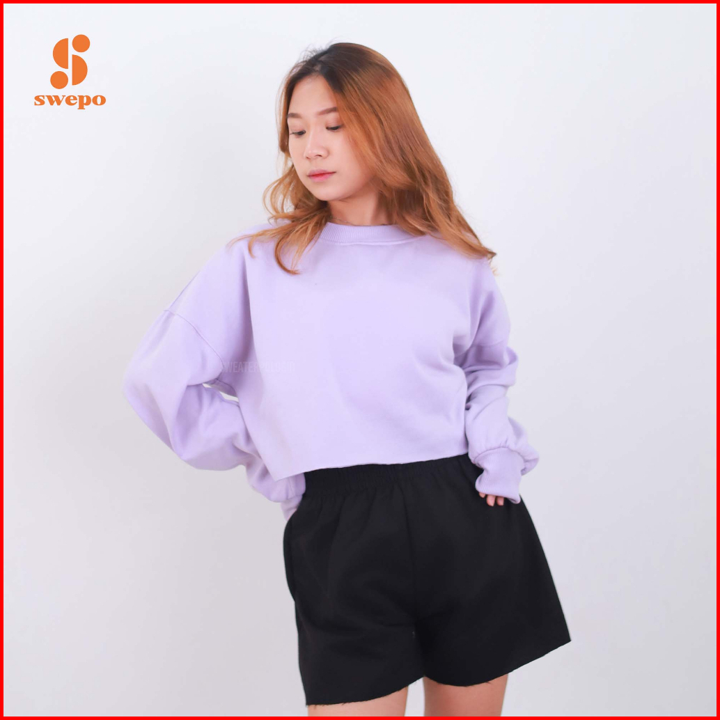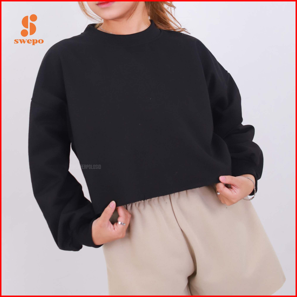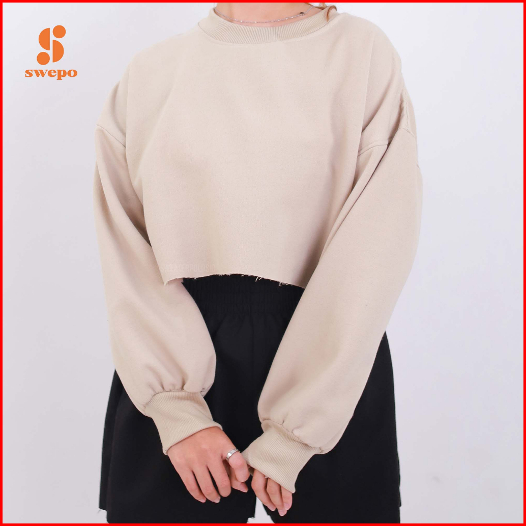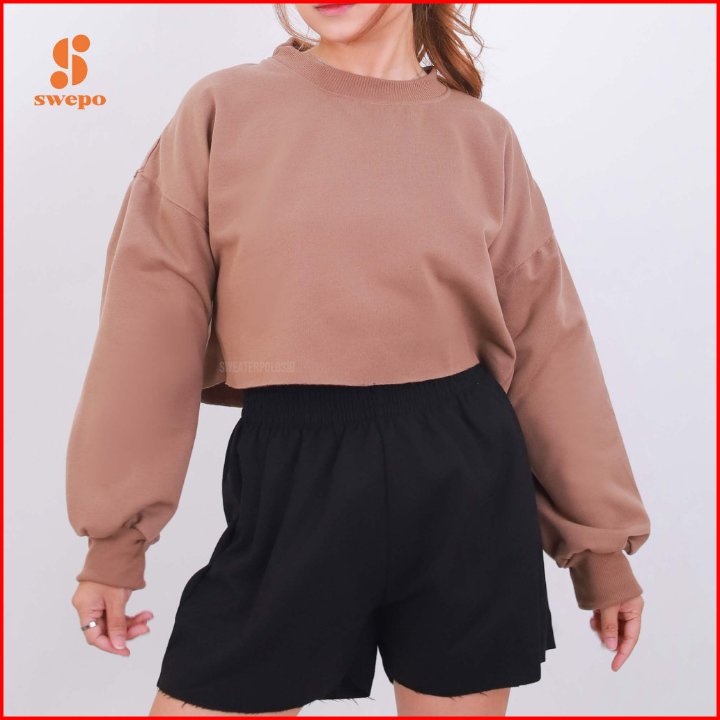 Swepo Basic Sweater Crop Balon Polos Size M-xxl