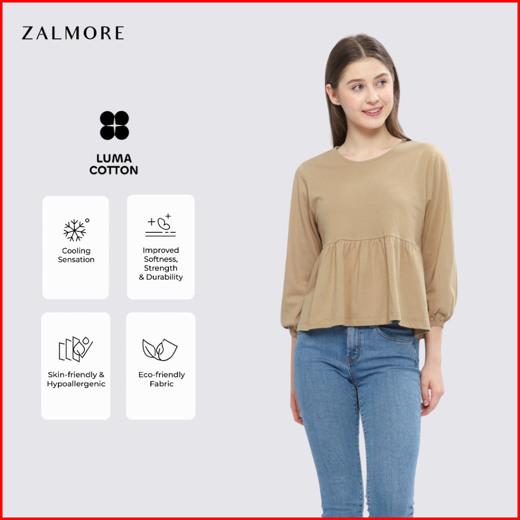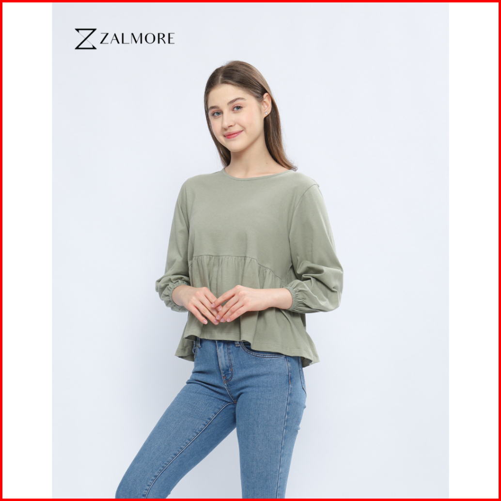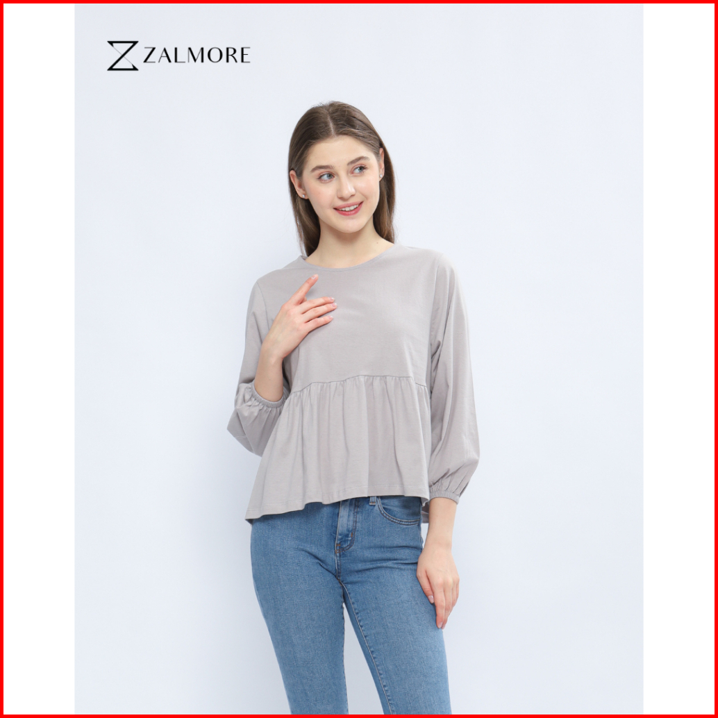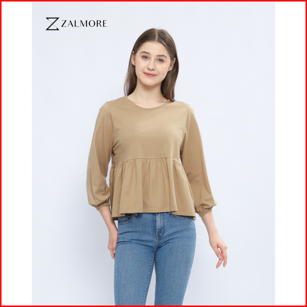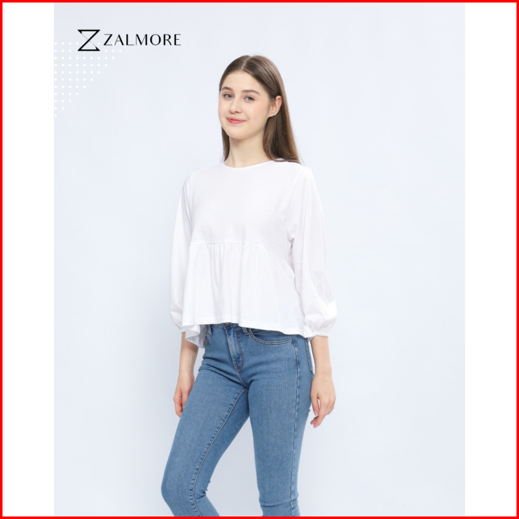 Zalmore Luma Cotton Women Balloon Sleeve Peplum Top Premium Cotton - Atasan Wanita Lengan Balon