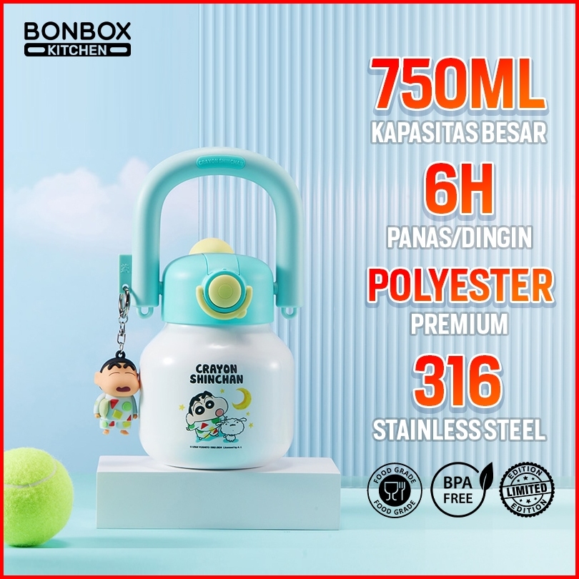 100 Ori Bonbox Special Edition Tumbler Vakum Termos 750ml Crayon Shinchan - Tahan Panas Dingin 6 Jam Anti Tumpah Botol M
