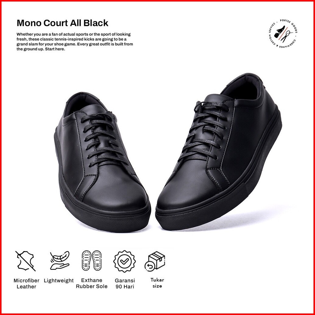 Sepatu Pria Portee Mono Court All Black - Sneakers Nyaman Stylish Sepatu Hitam Kerja Kuliah