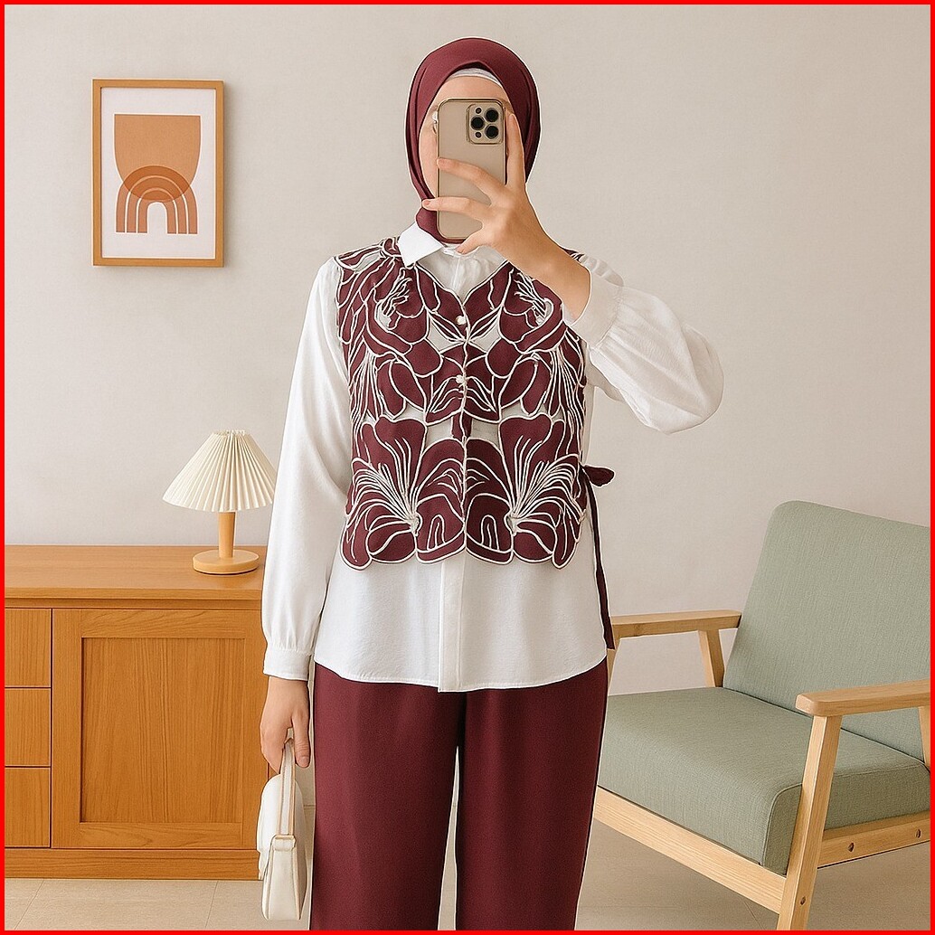 Femes Amaya Blouse Wanita Muslim All Size Fit To L Atasan Lengan Panjang L Kantoran Casual Daily