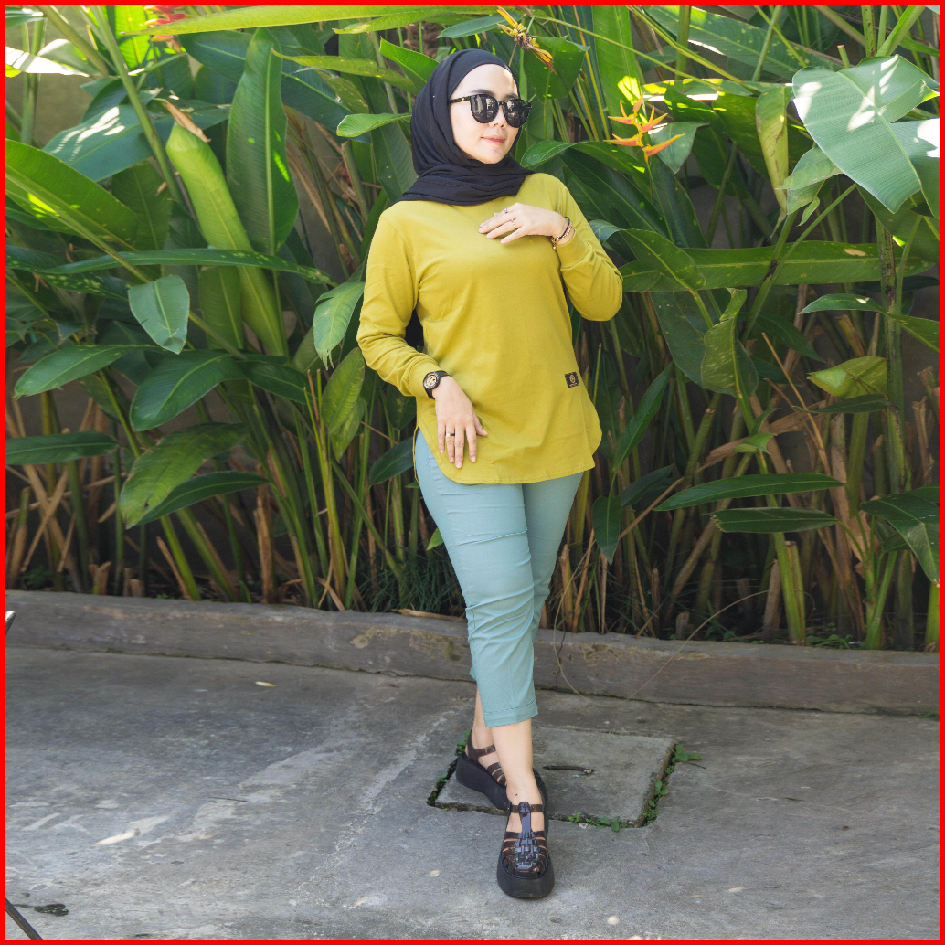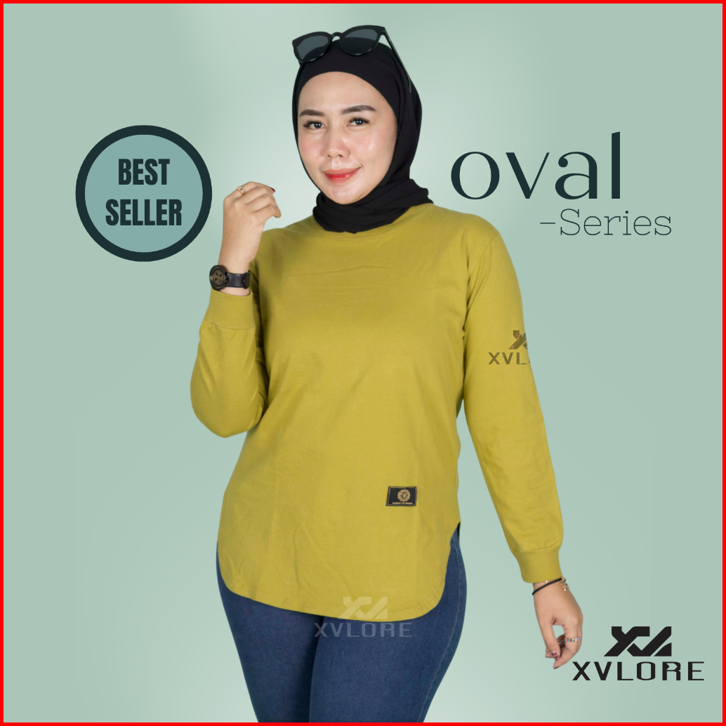 Xvlore Fst Kaos Cewek Wanita Atasan Lengan Panjang Bawahan Oval Polos Real Pict Nyaman Katun Combed Premium A.1
