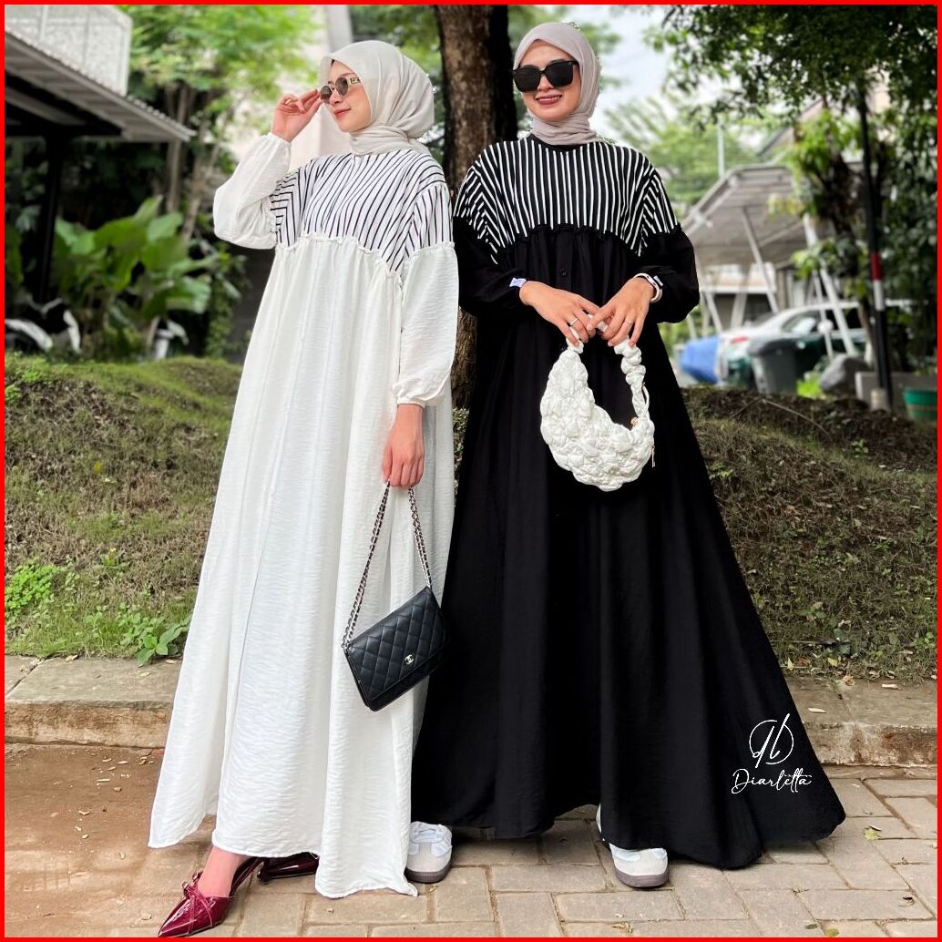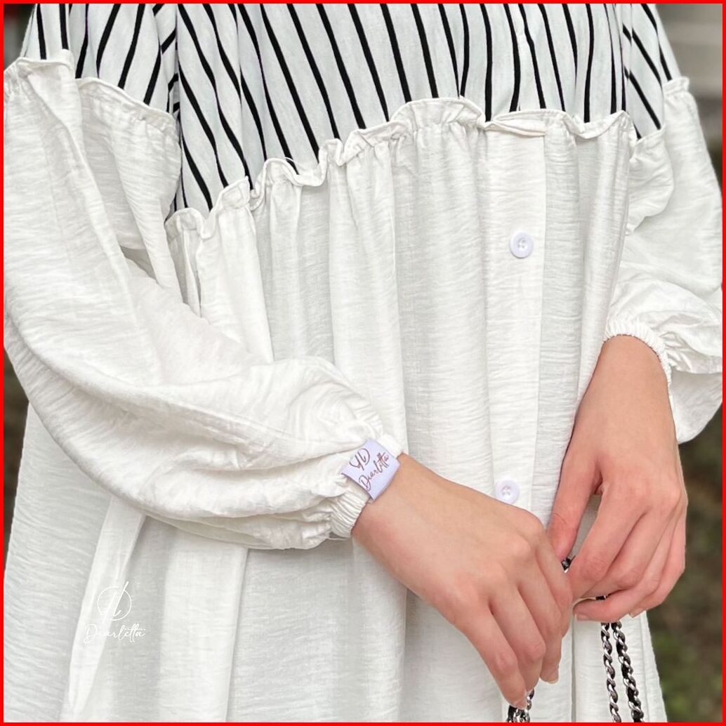 Nahwa Dress Ruffle Abaya Kombinasi Kaos Salur Polo Linen Dress Umbrella By Diarletta