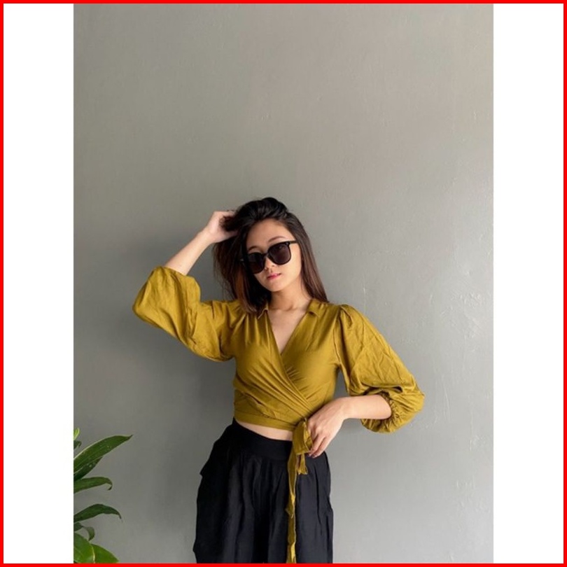 Wrap Blouse Baju Kemeja Atasan Blouse Wanita Wrap Top Warp Top Kaira Crop Wrap Blouse Wrap Top Blouse