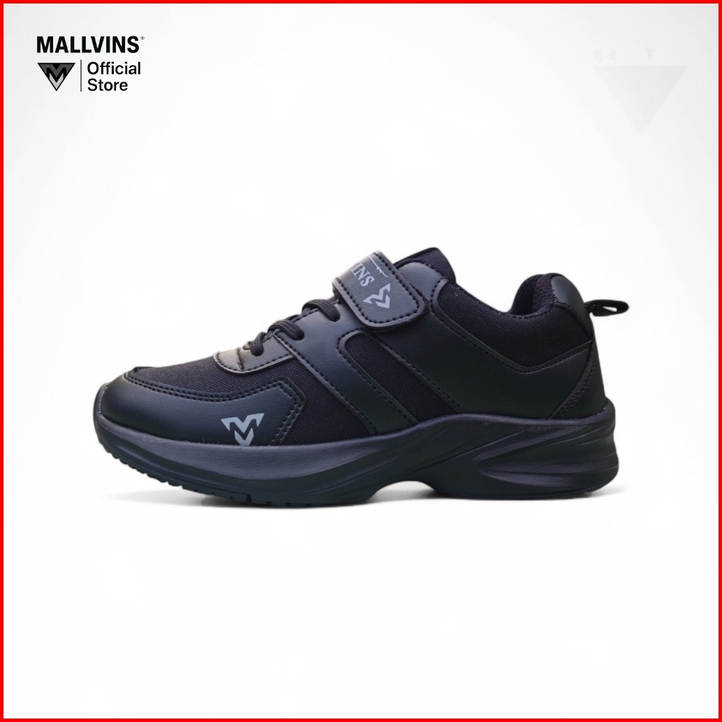 Mallvins- Gaza Full Black - Sepatu Sekolah Casual Sneakers Anak