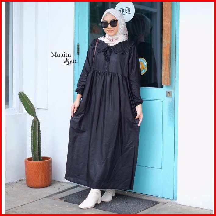 Sesa Dress Crinkle Airflow Salma Dress Gamis Gamis Polos Busui Friendly