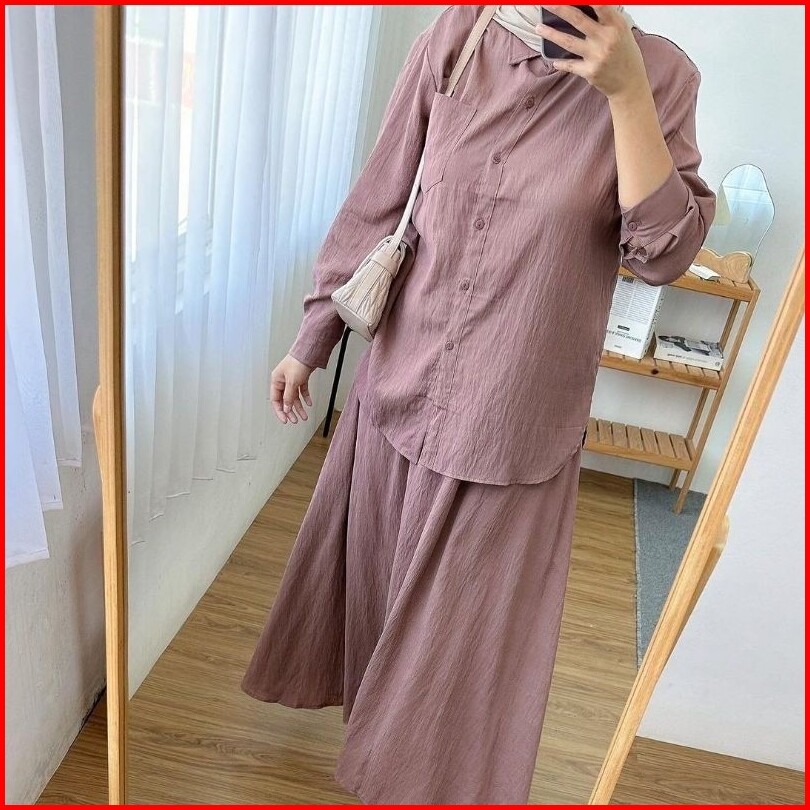 Geneaby - Humaira One Set Skirt Rok Premium Setelan Rok Crinkle Airflow