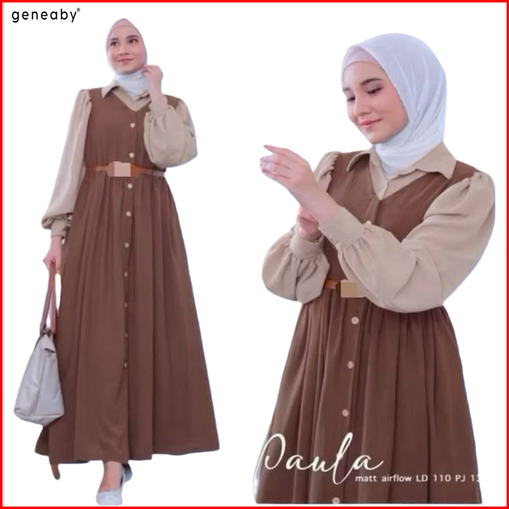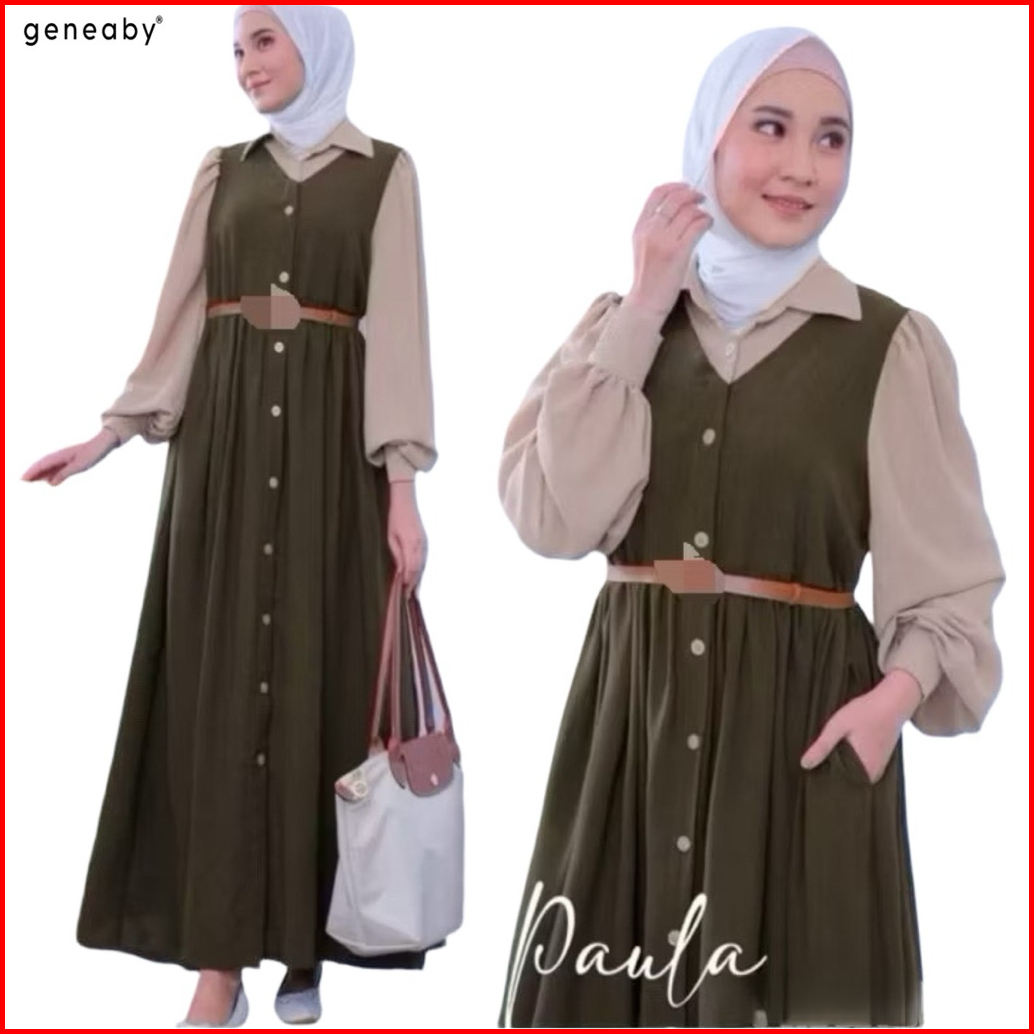 Geneaby - Paula Dress Free Belt Gamis Wanita Muslimah Lebaran Bahan Crinkle Airflow Size Xl