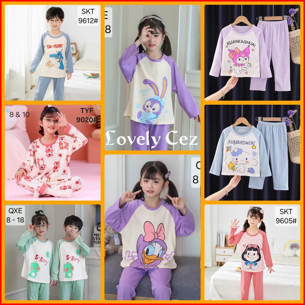 Baju Tidur Anak Remaja Premium Katun Piyama Anak Lengan Panjang Umur 4-13th