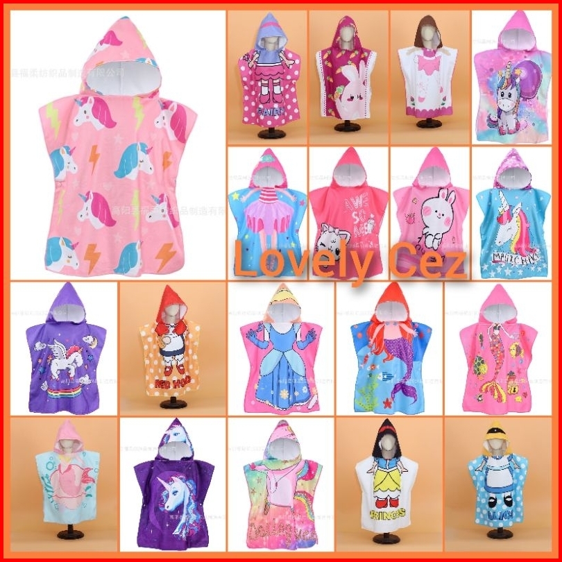 Handuk Ponco Anak Karakter Princess Handuk Berenang Ponco Ballerina Unicorn
