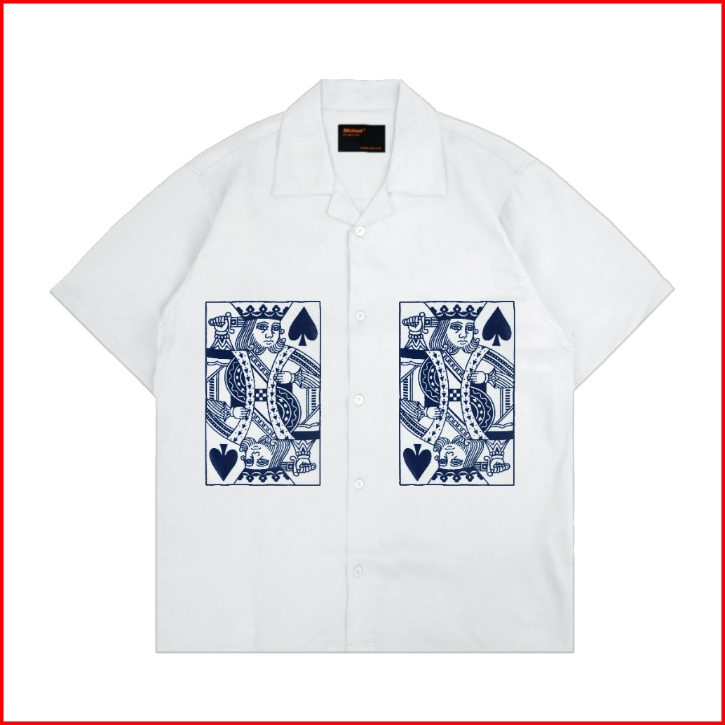 Mickout The Kings Casual Shirt - Kemeja Kasual Print Pria Katun Rayon Relaxed Fit Lengan Pendek - Putih