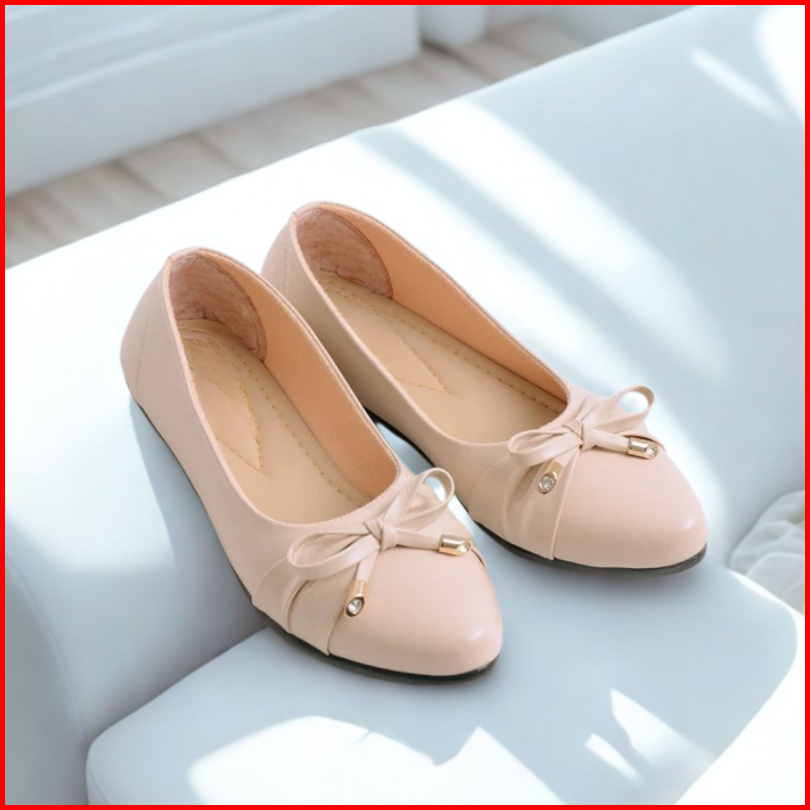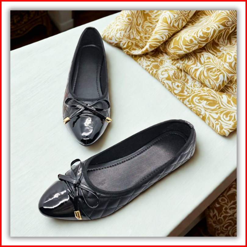 Balet Terpopuler 2025 Sepatu Wanita Flatshoes Pita Sintetis Pariasi Ujung Bambu Ukuran 37-40