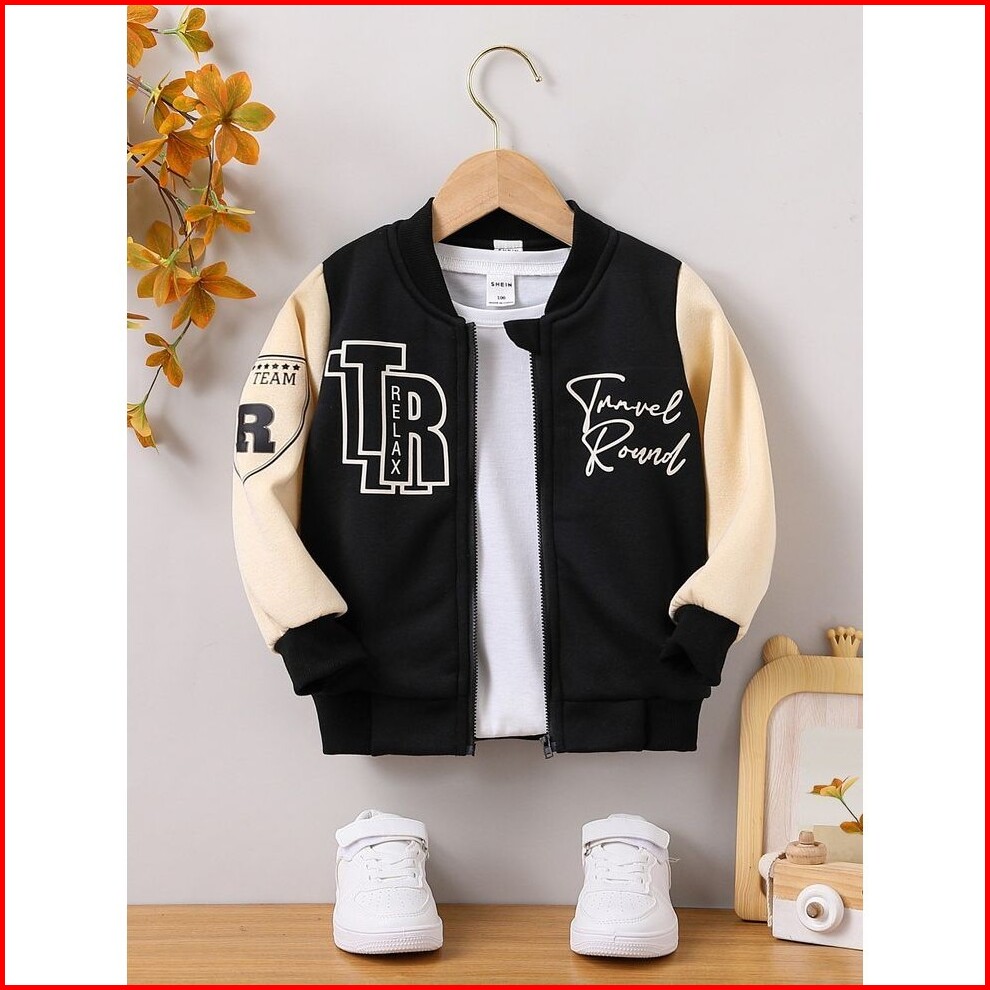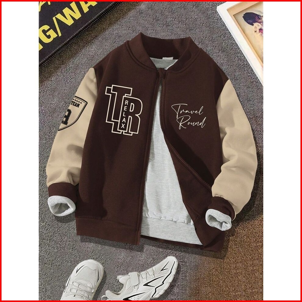 Femes Tr Ziper Jaket Baseball Anak Matt Fleece Premium All Size Fit To 8 - 10 Tahun