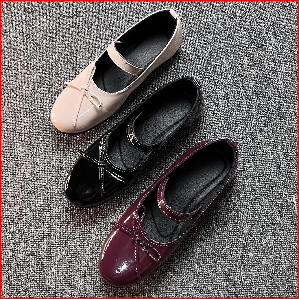 Sepatu Wanita Flatshoes Motif Tali Pita Sepatu Flat Shoes Burgundy Cream Black Size 37-40
